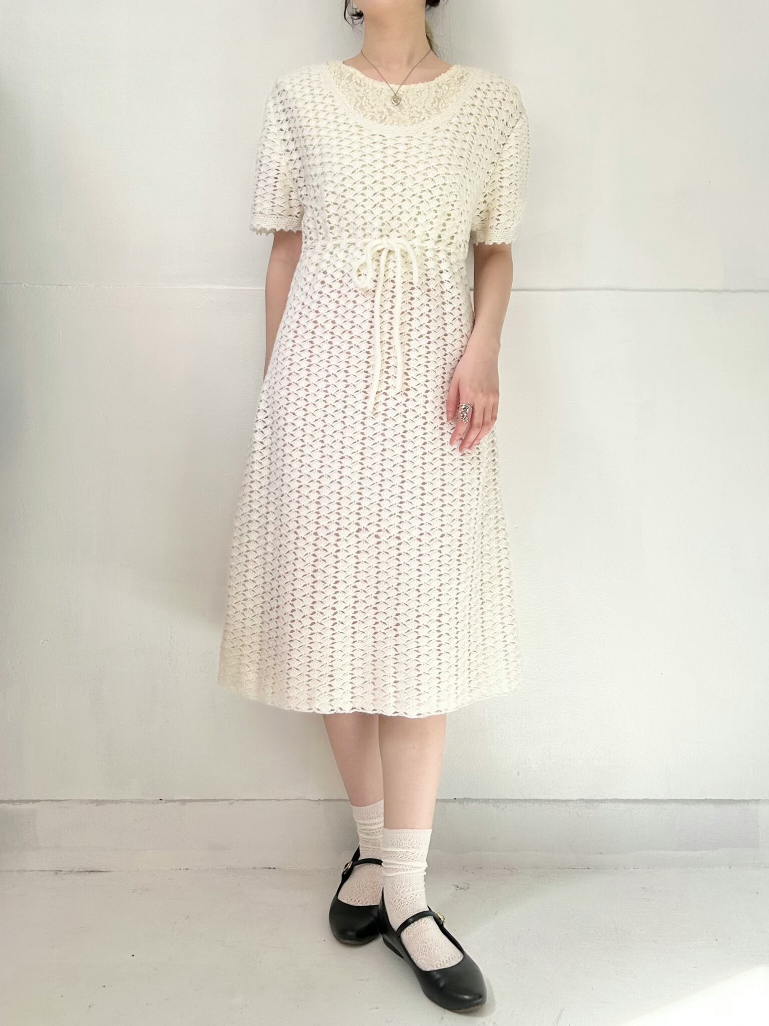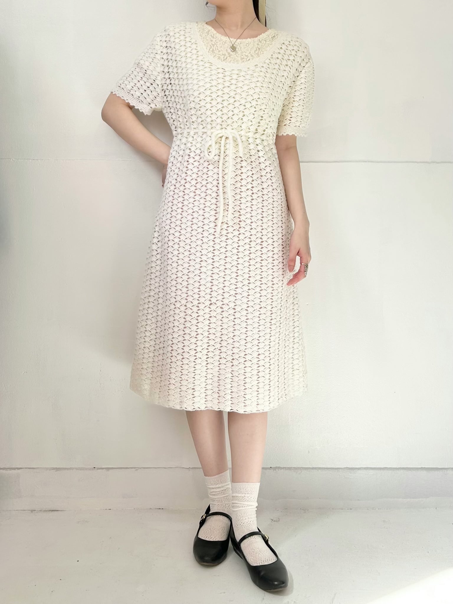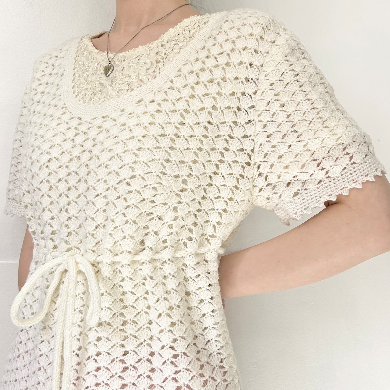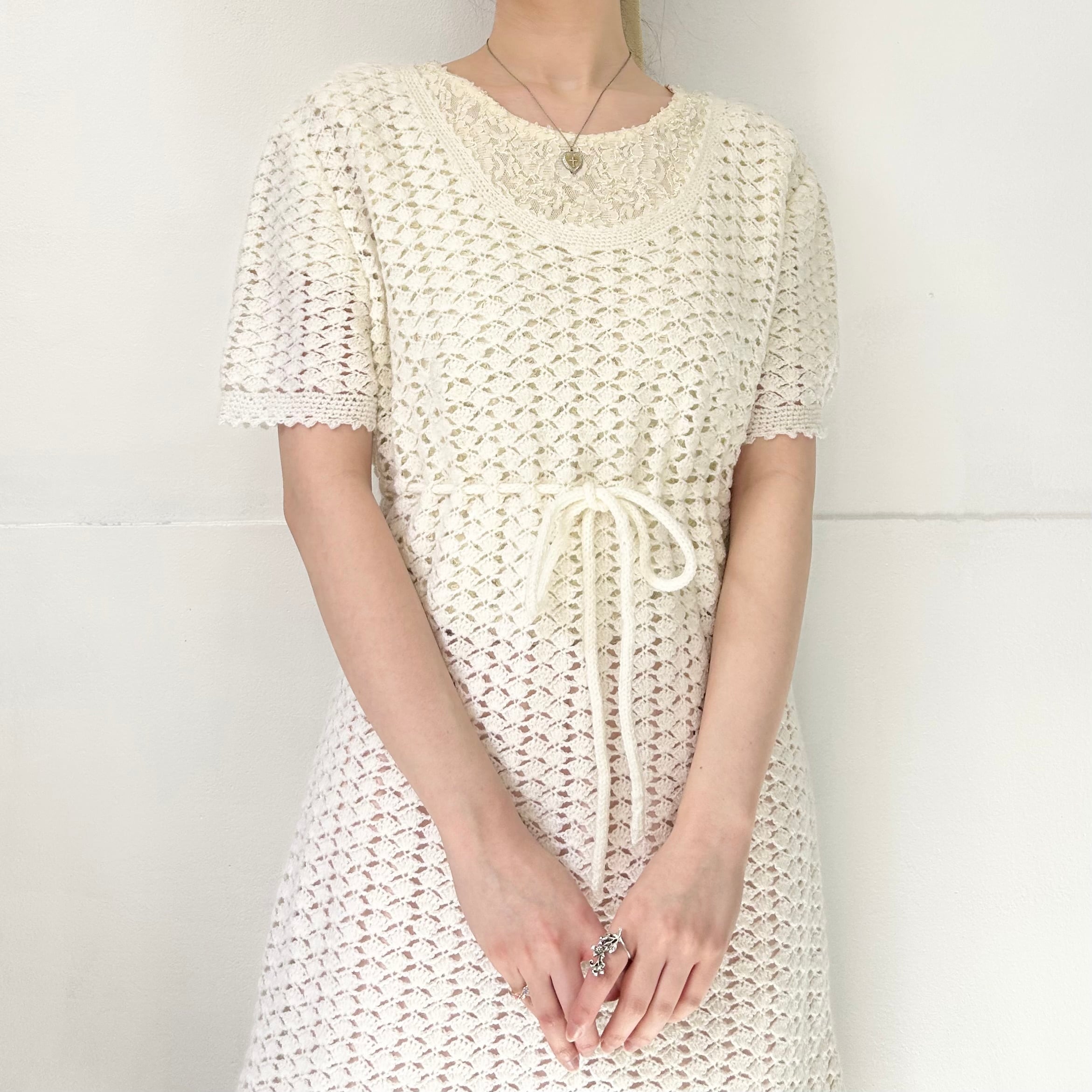 ウエストリボンは着け外し可能で、編み模様のどこにでも通せます❀