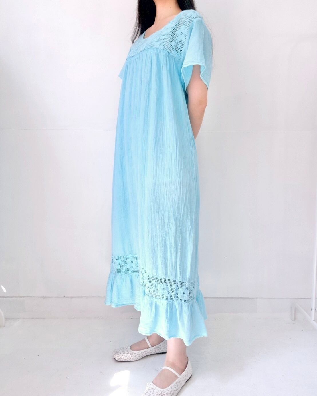 鮮やか過ぎないラムネのようなターコイズブルーのコットンワンピース