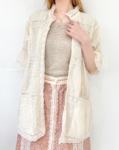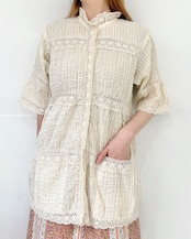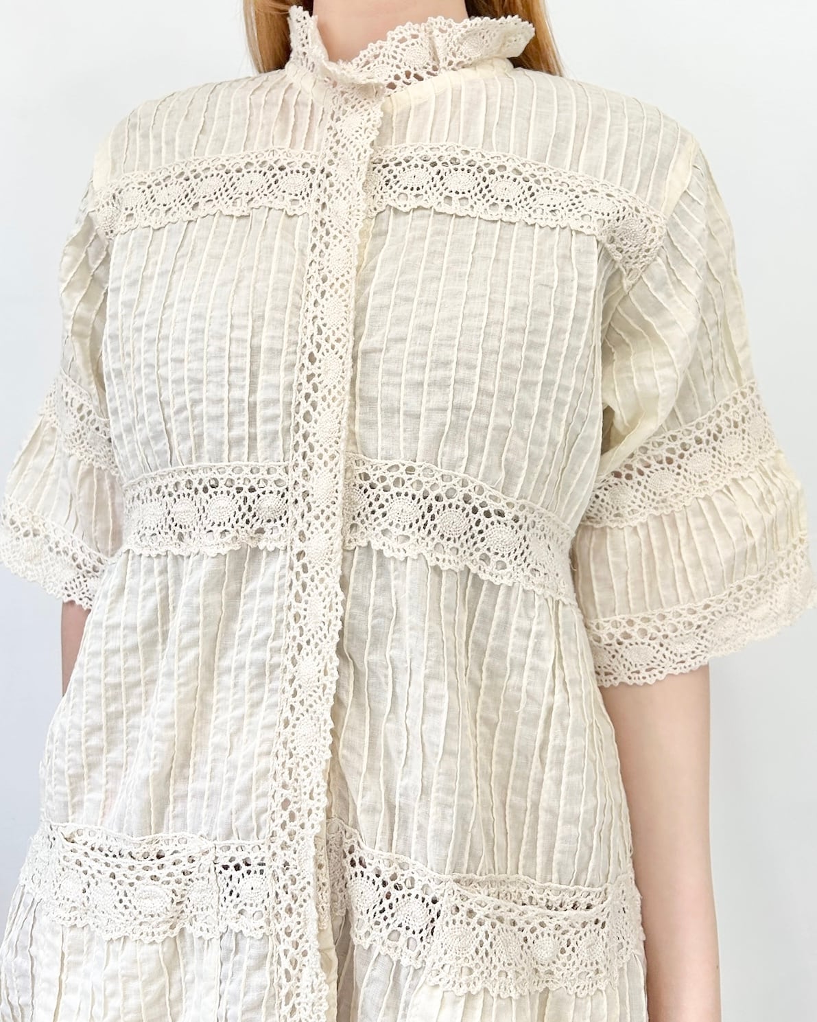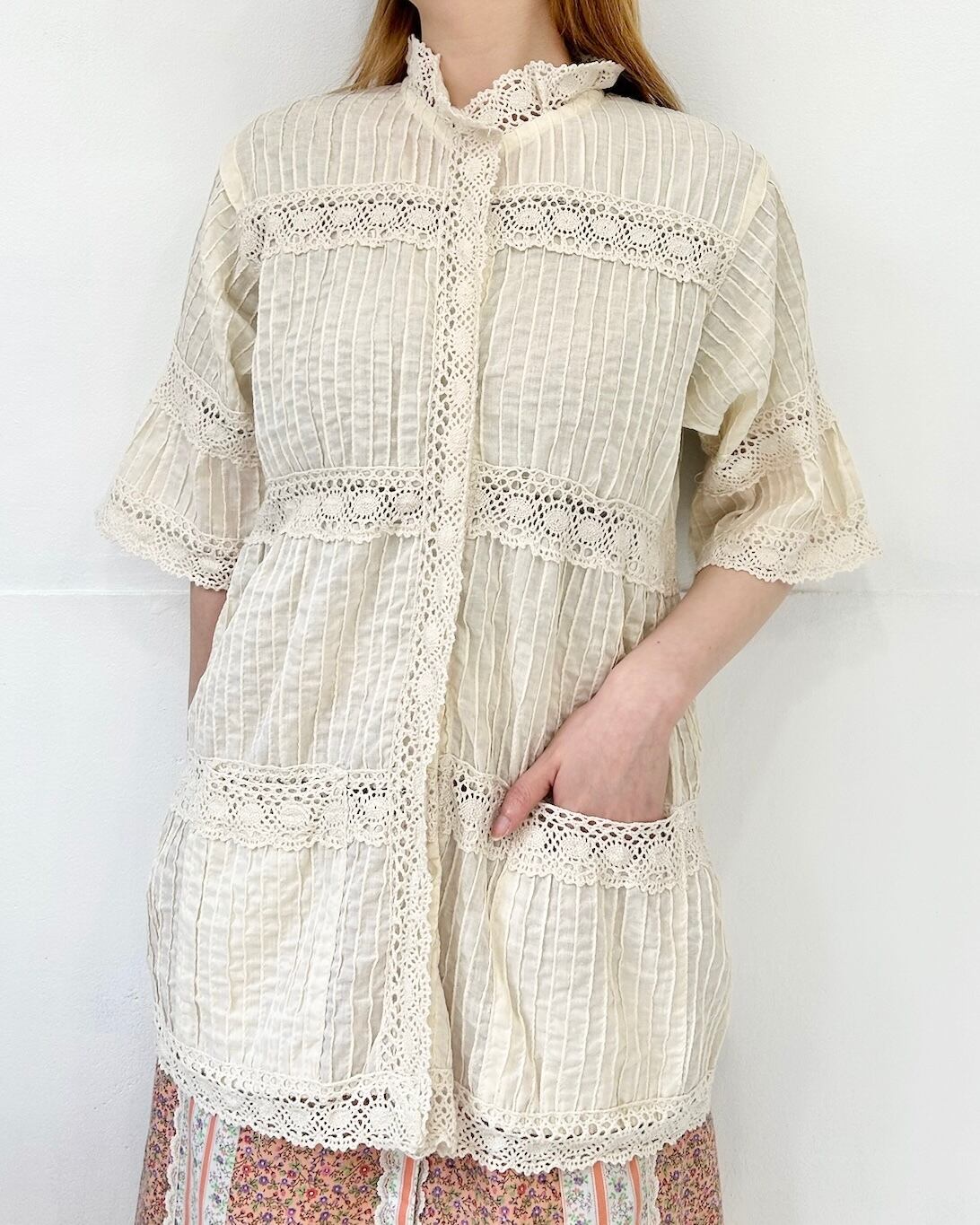 立体感のあるピンタック生地とクロシェレースの切り替えになったブラウス