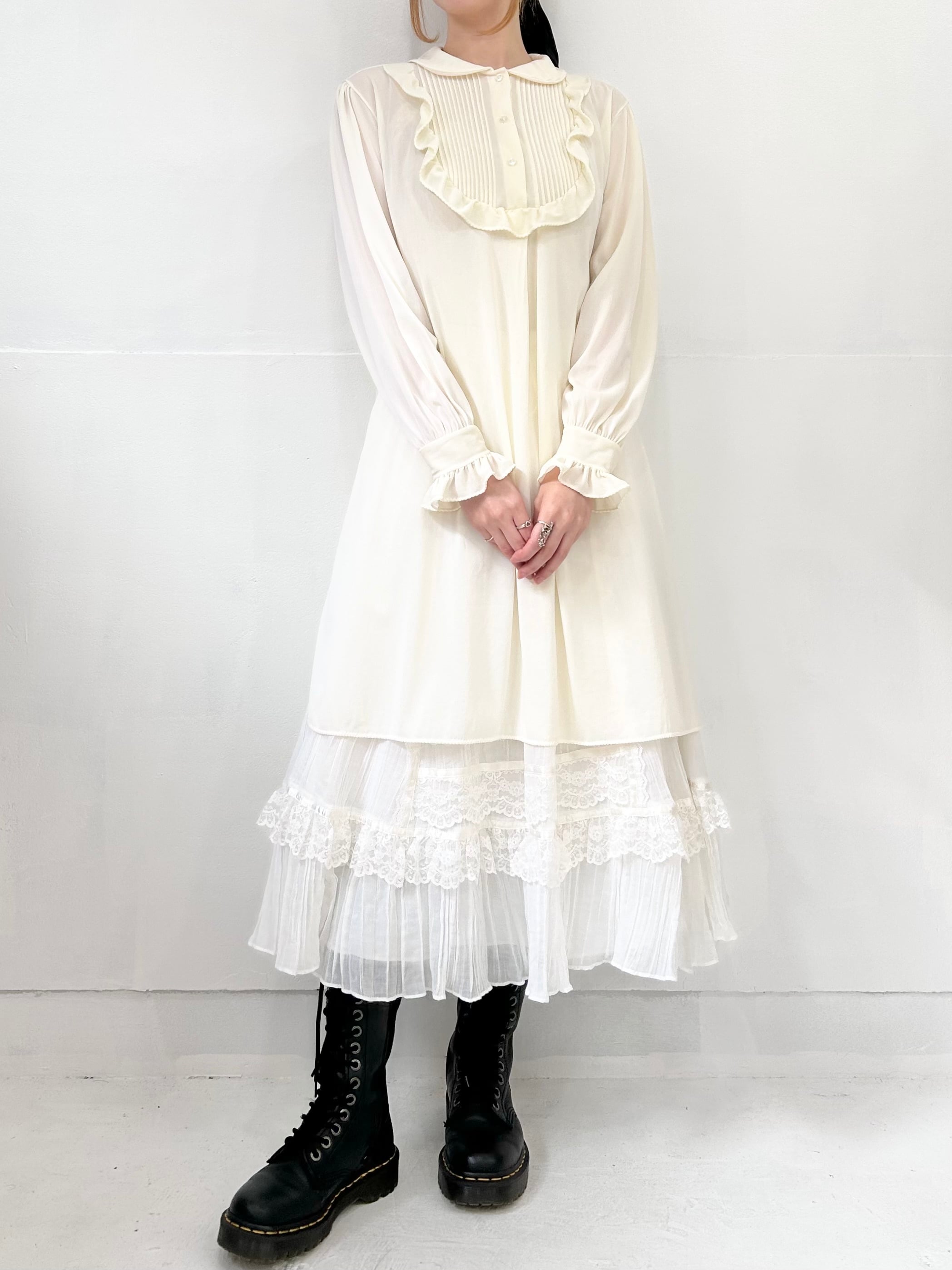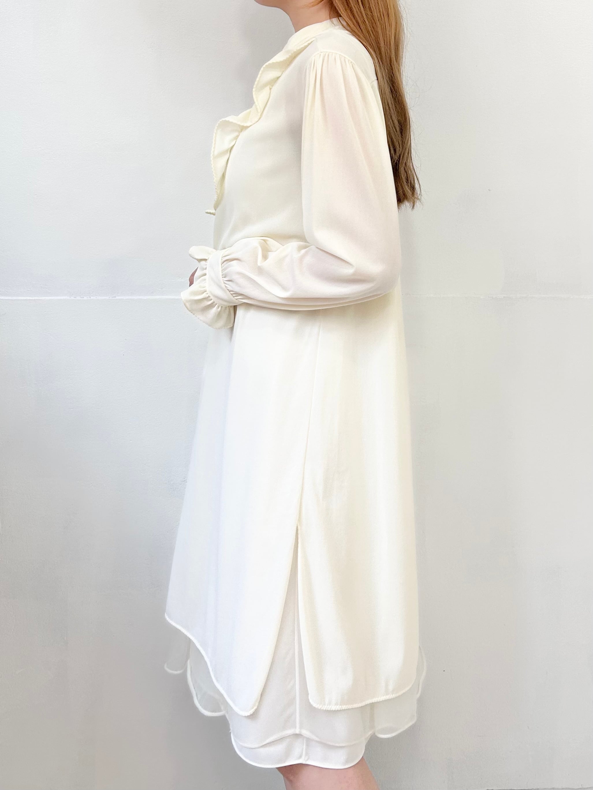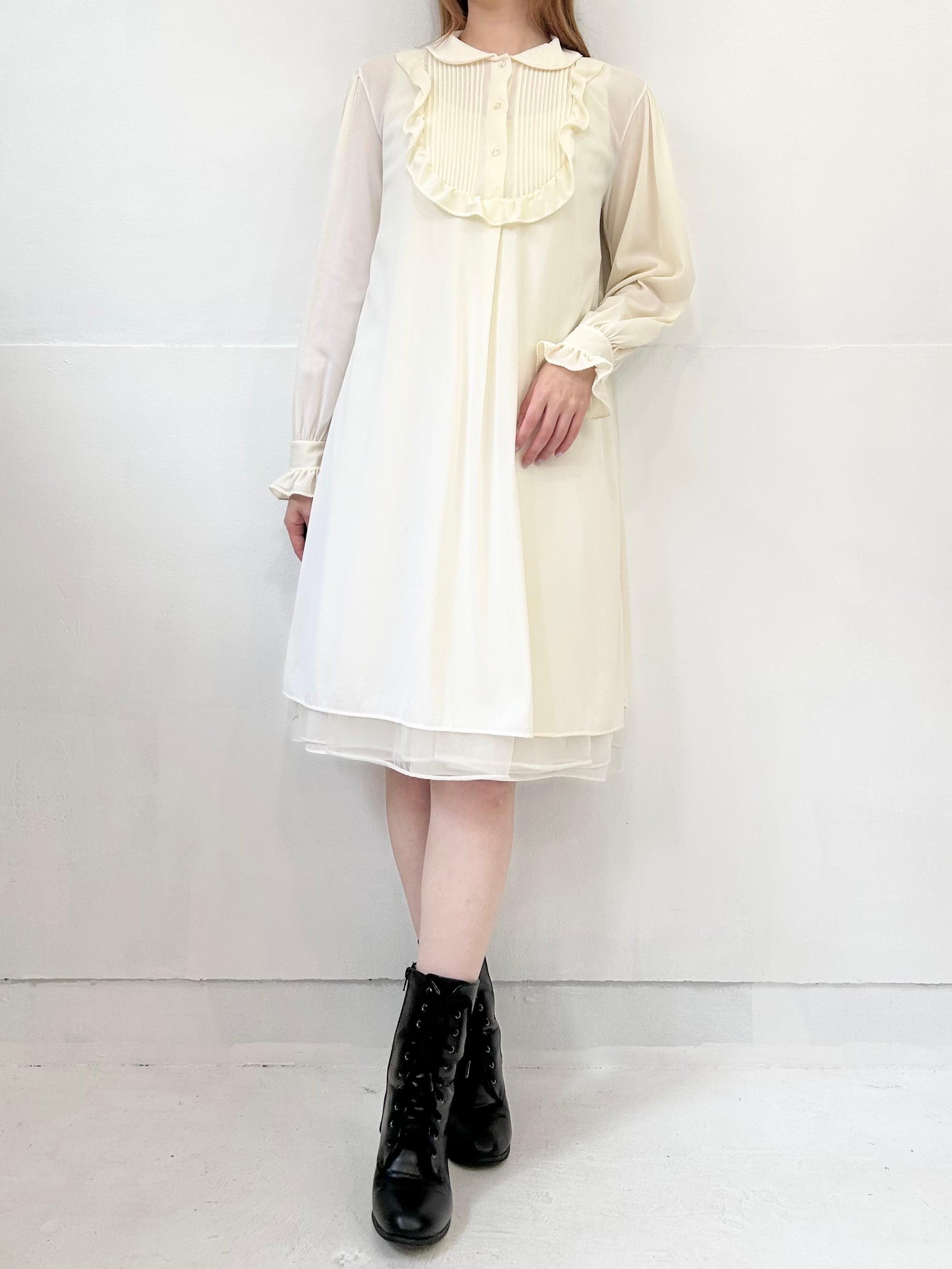 柔らかいクリーム色でgirlyな雰囲気のワンピース