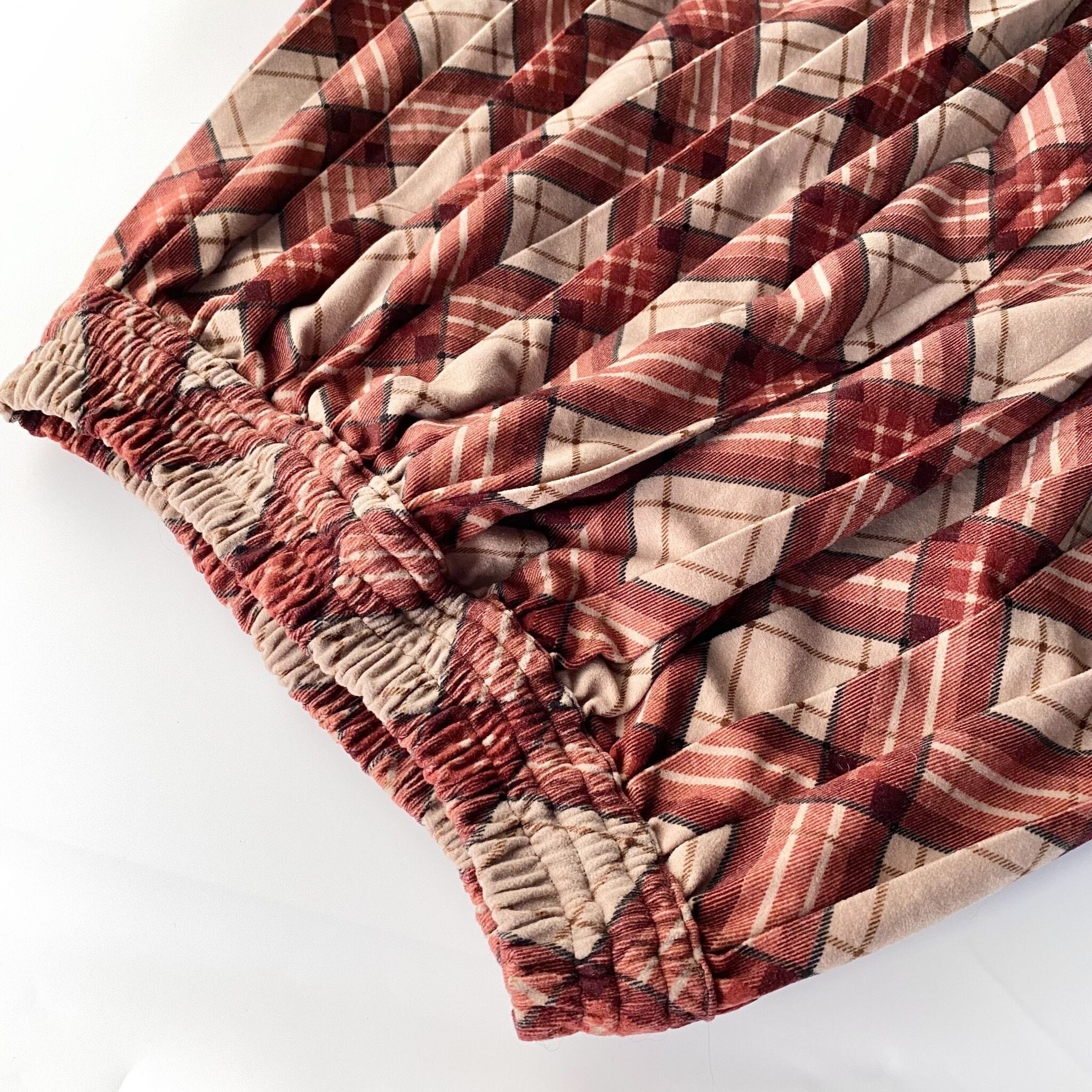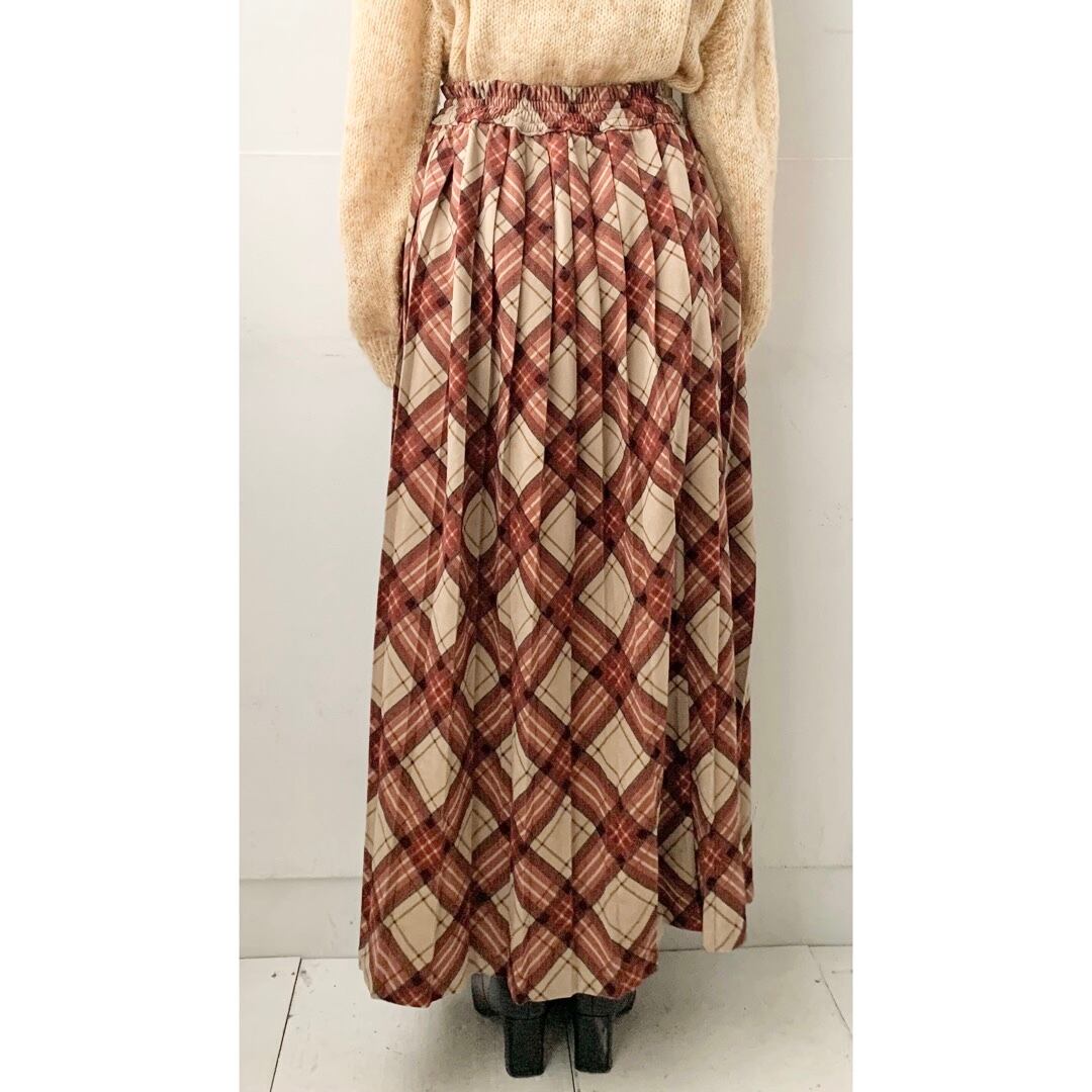 スモーキーな色味のチェック柄プリーツロングスカート。