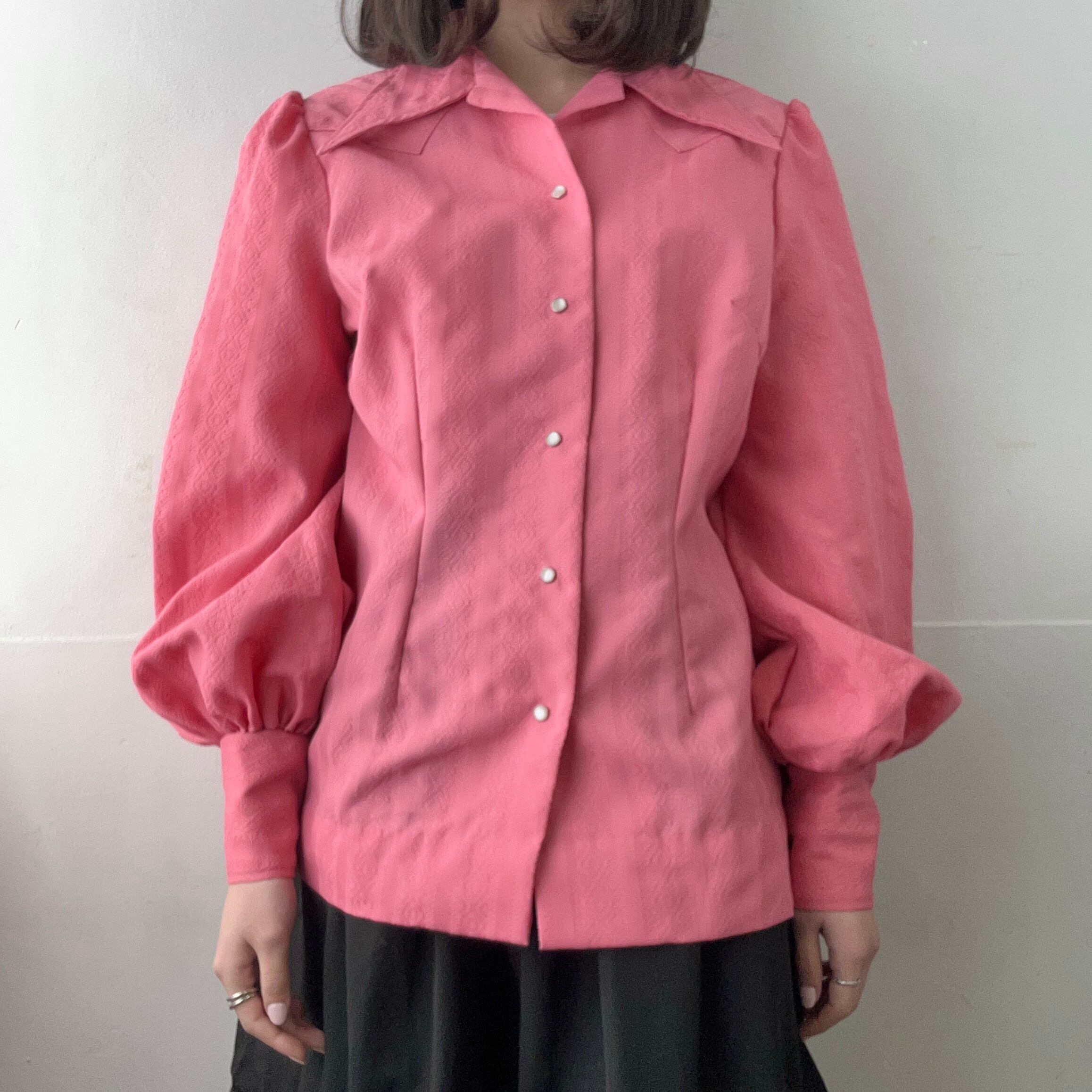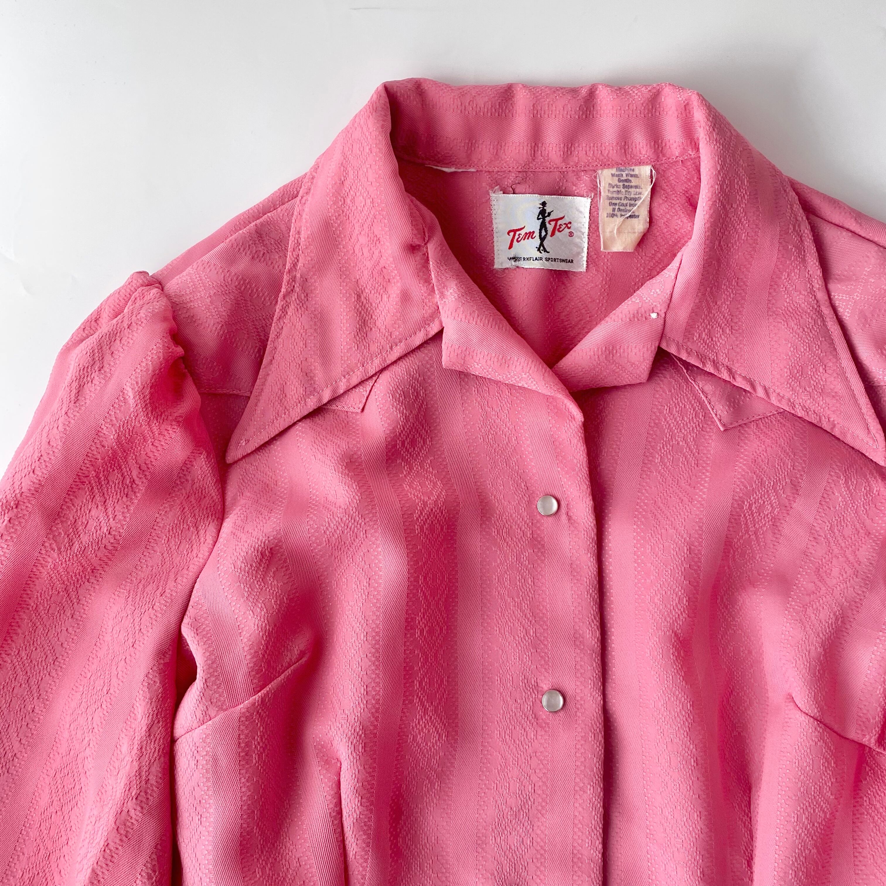 70'sらしいツンとした形の大きな襟、ウェスタンシャツのような艶やかなスナップボタン