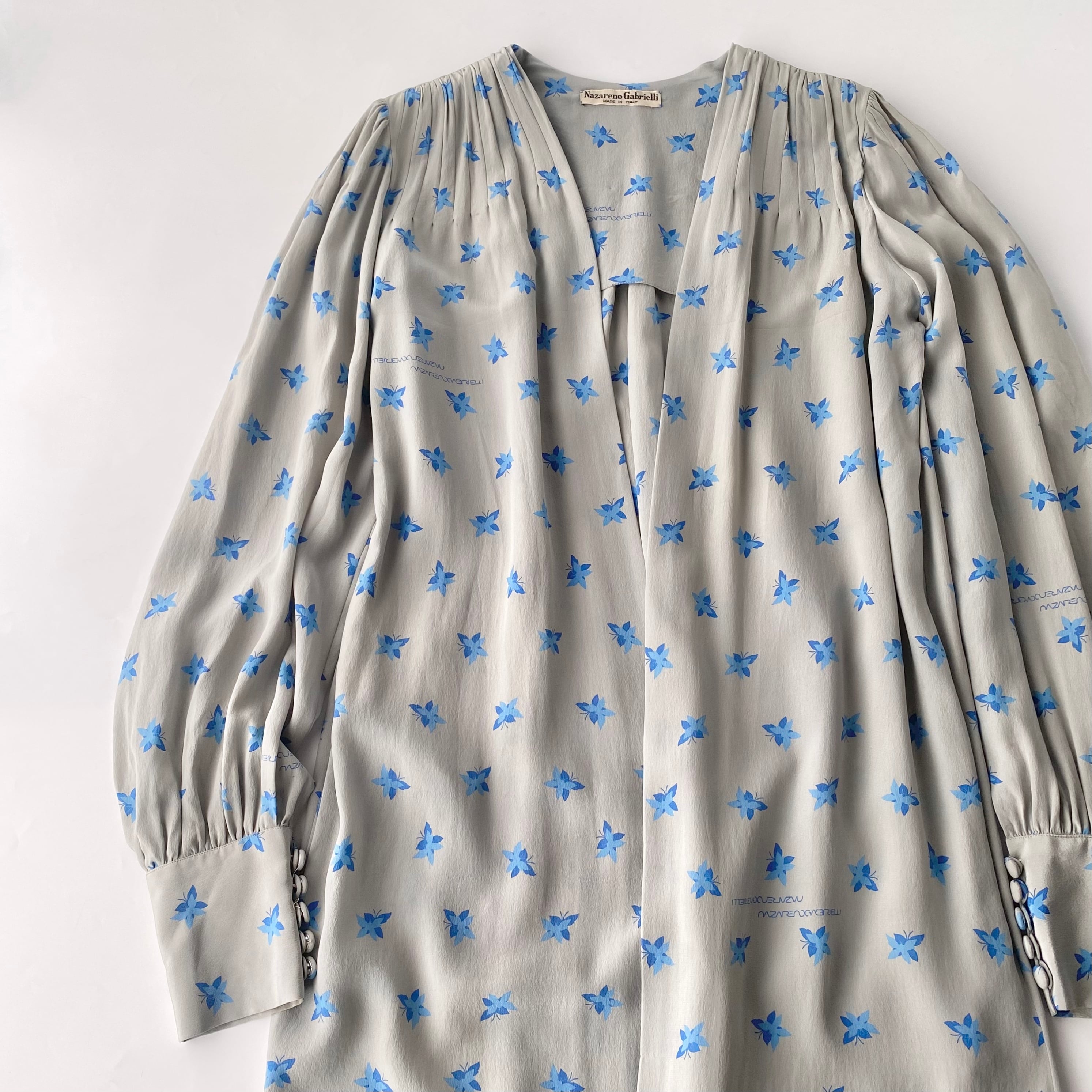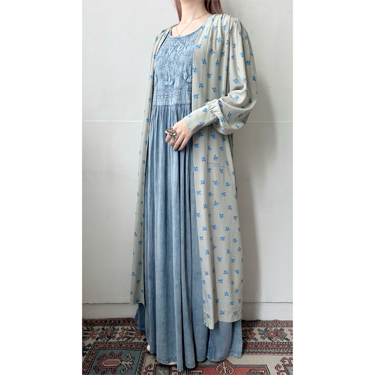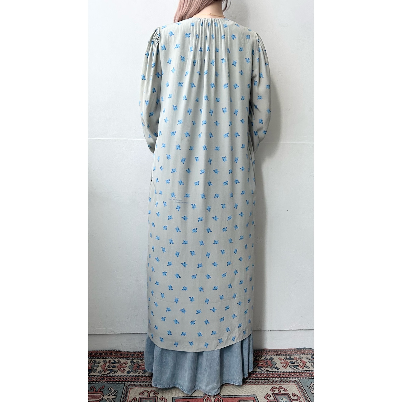 青いちょうちょ柄のvintageロングガウン。
