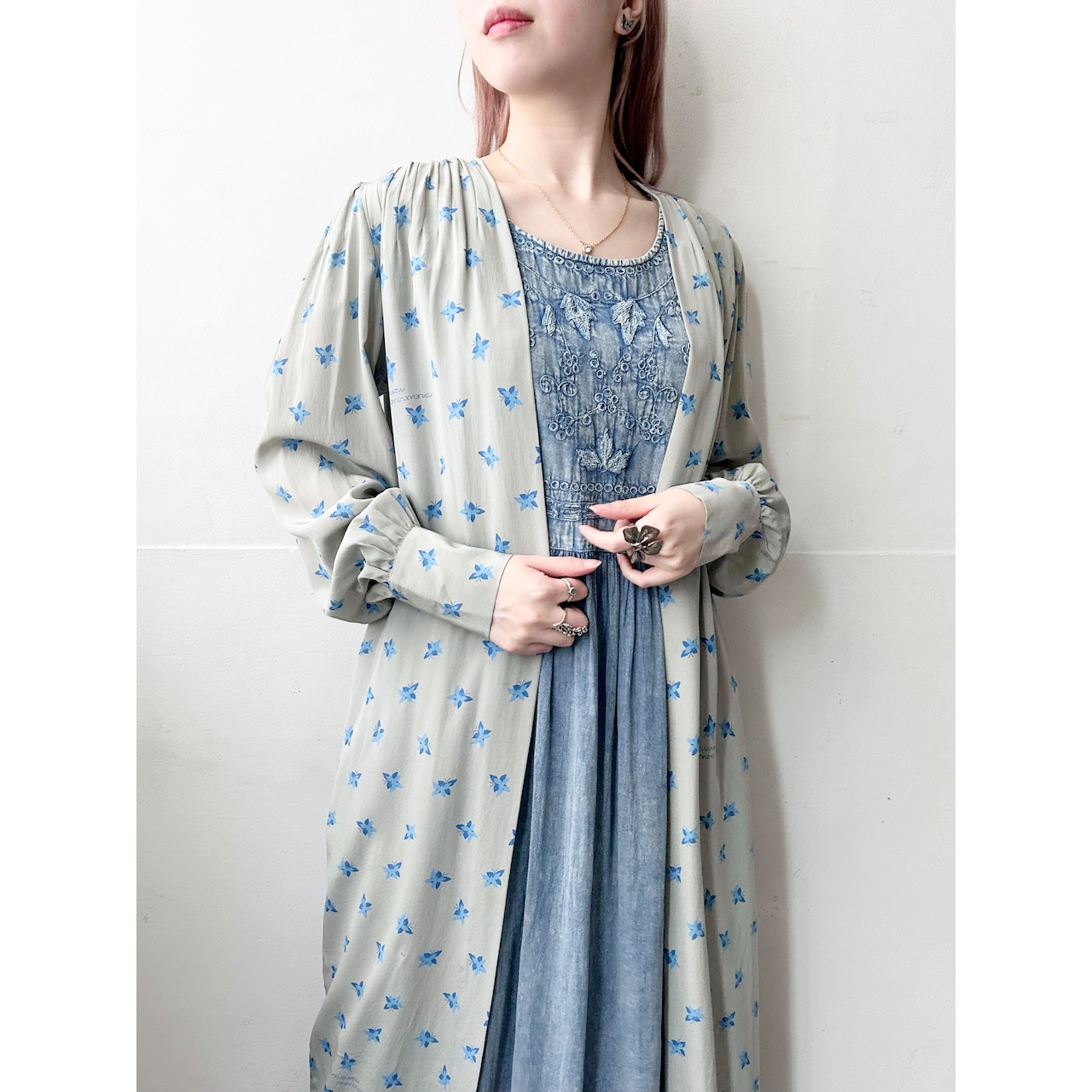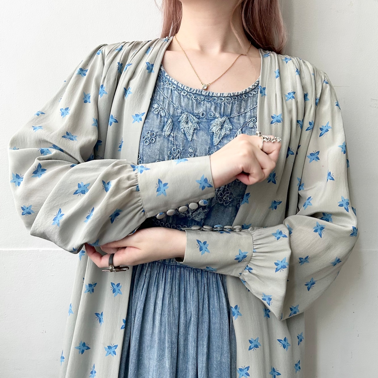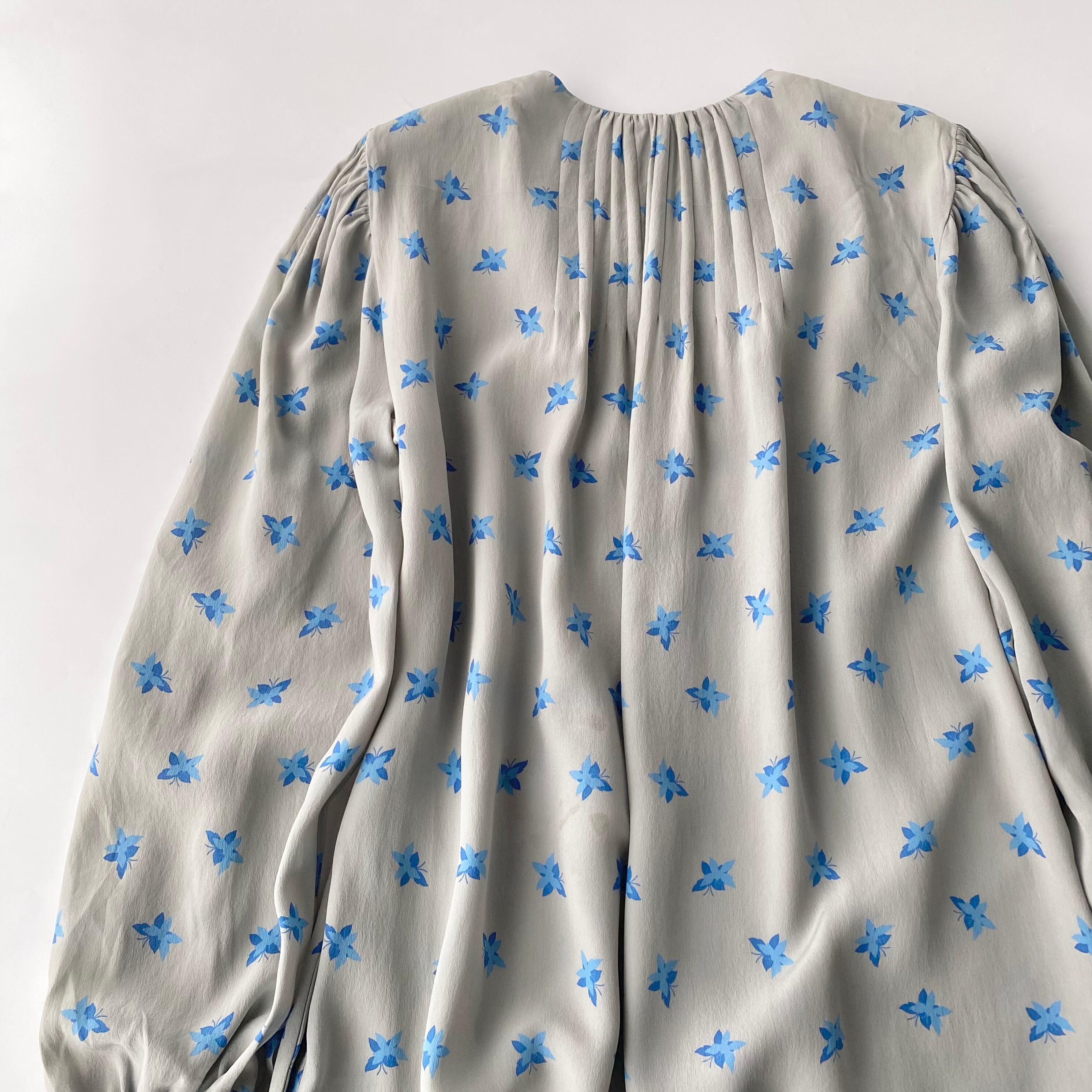 青いちょうちょ柄のvintageロングガウン。