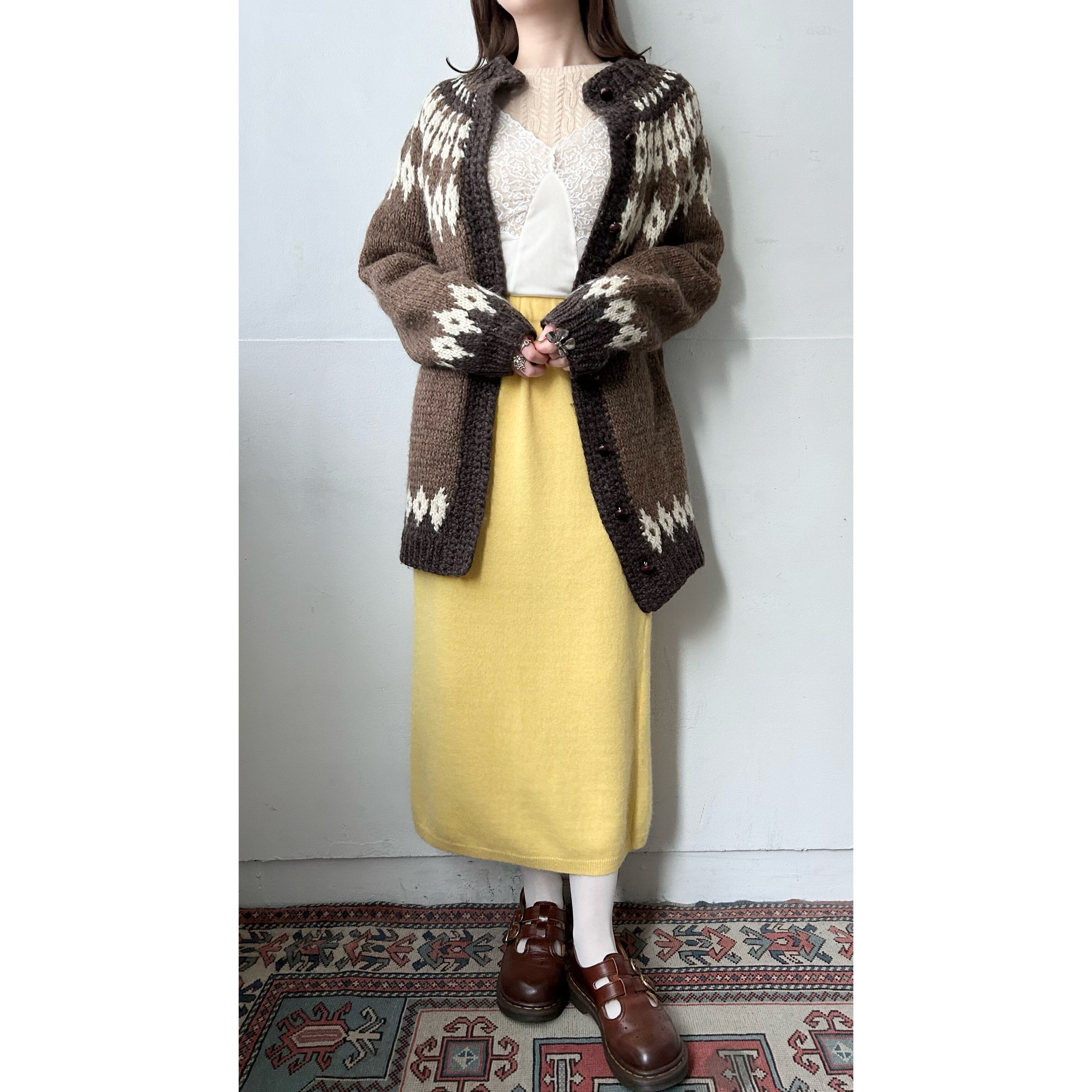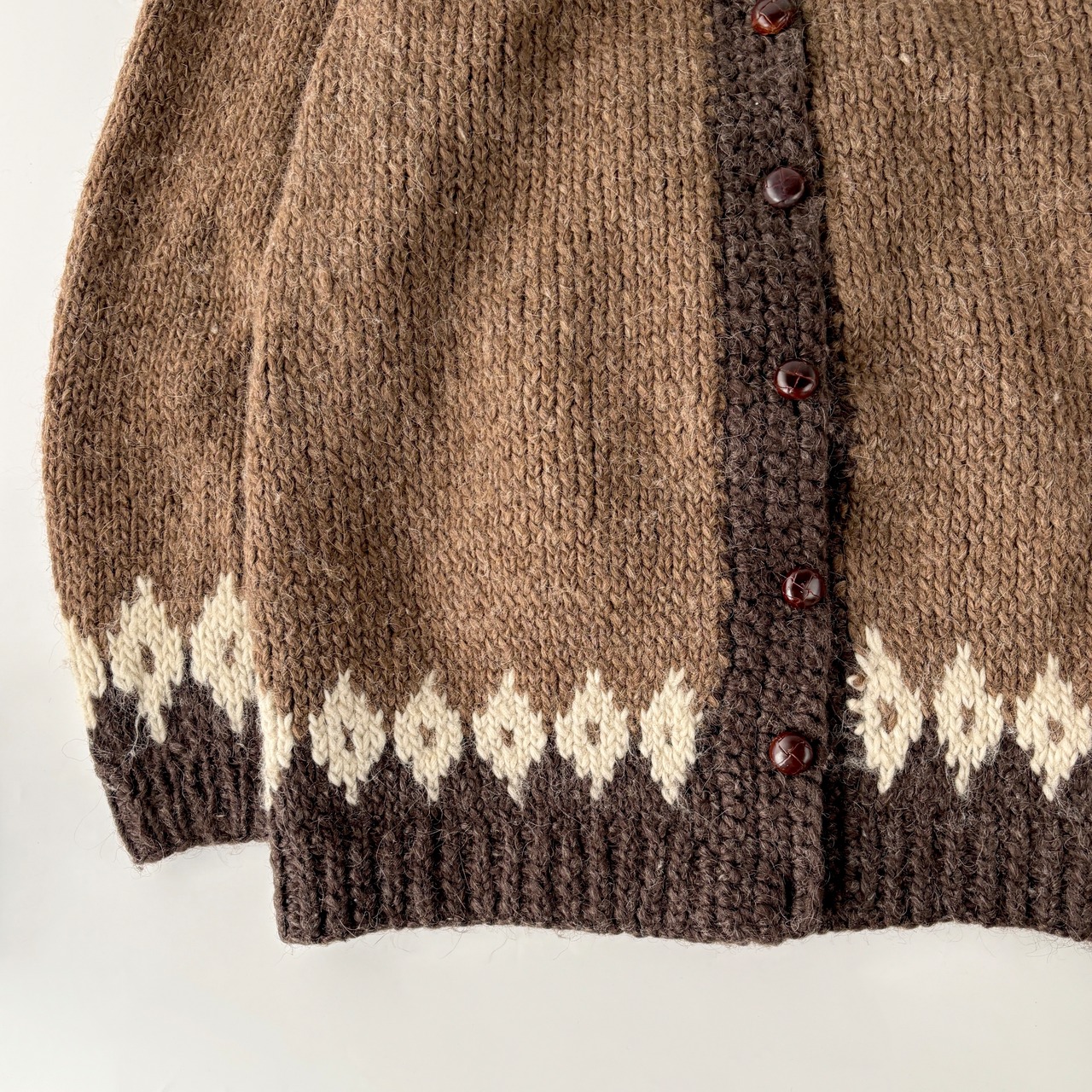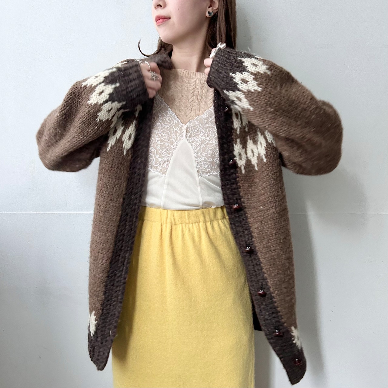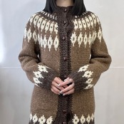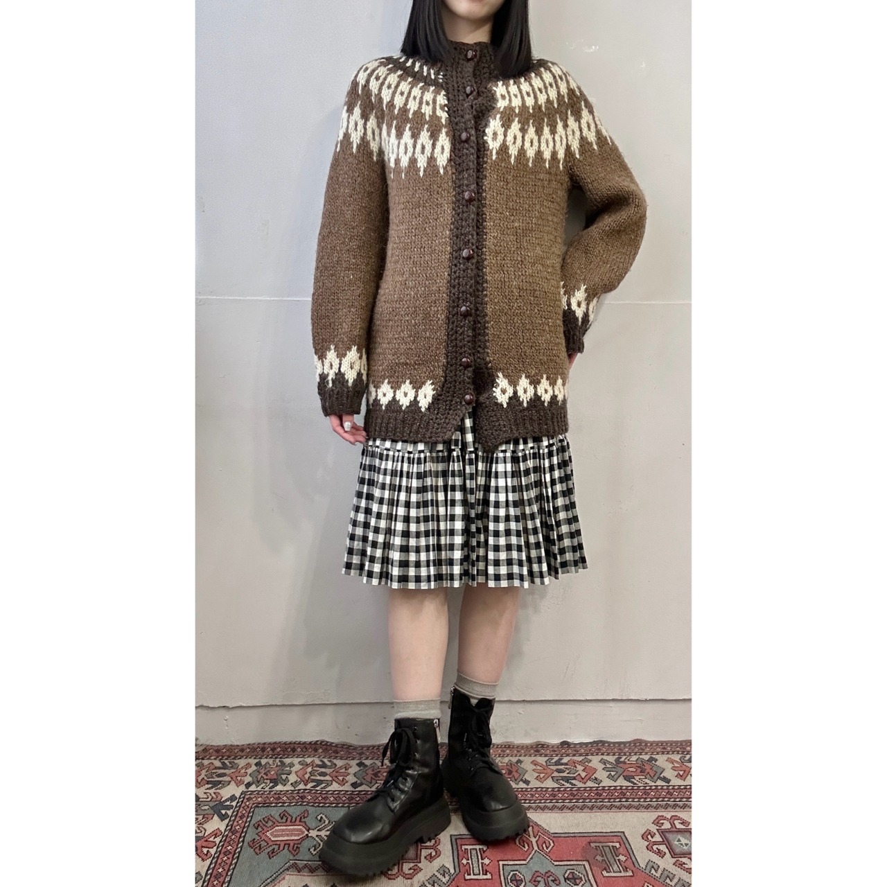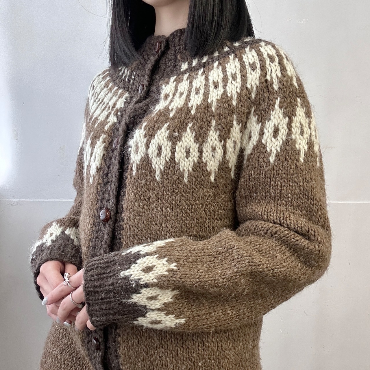 ブラウンカラーのノルディック柄ニットカーディガン。