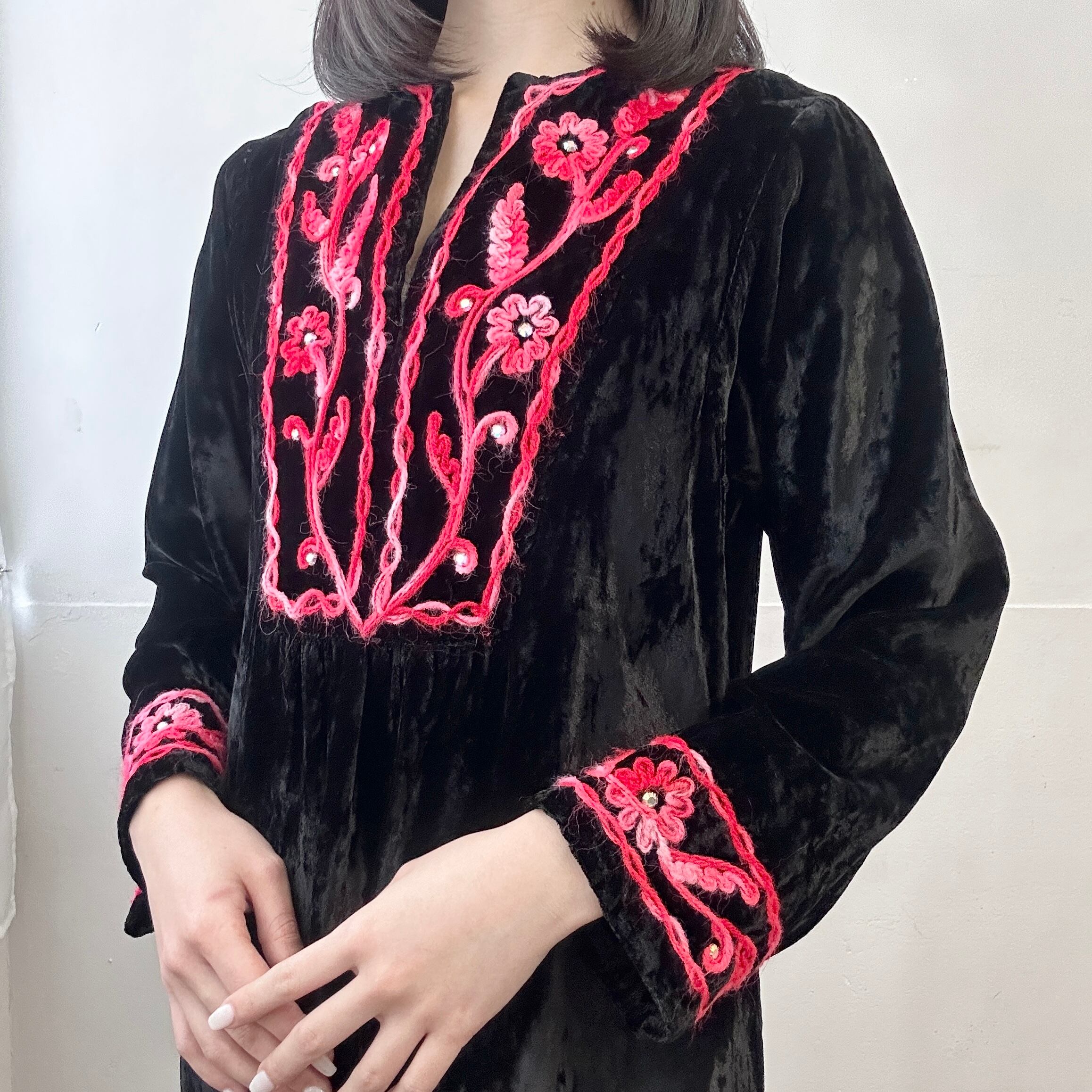赤×ピンクの毛糸刺繍とビジューが良いアクセントに*.*