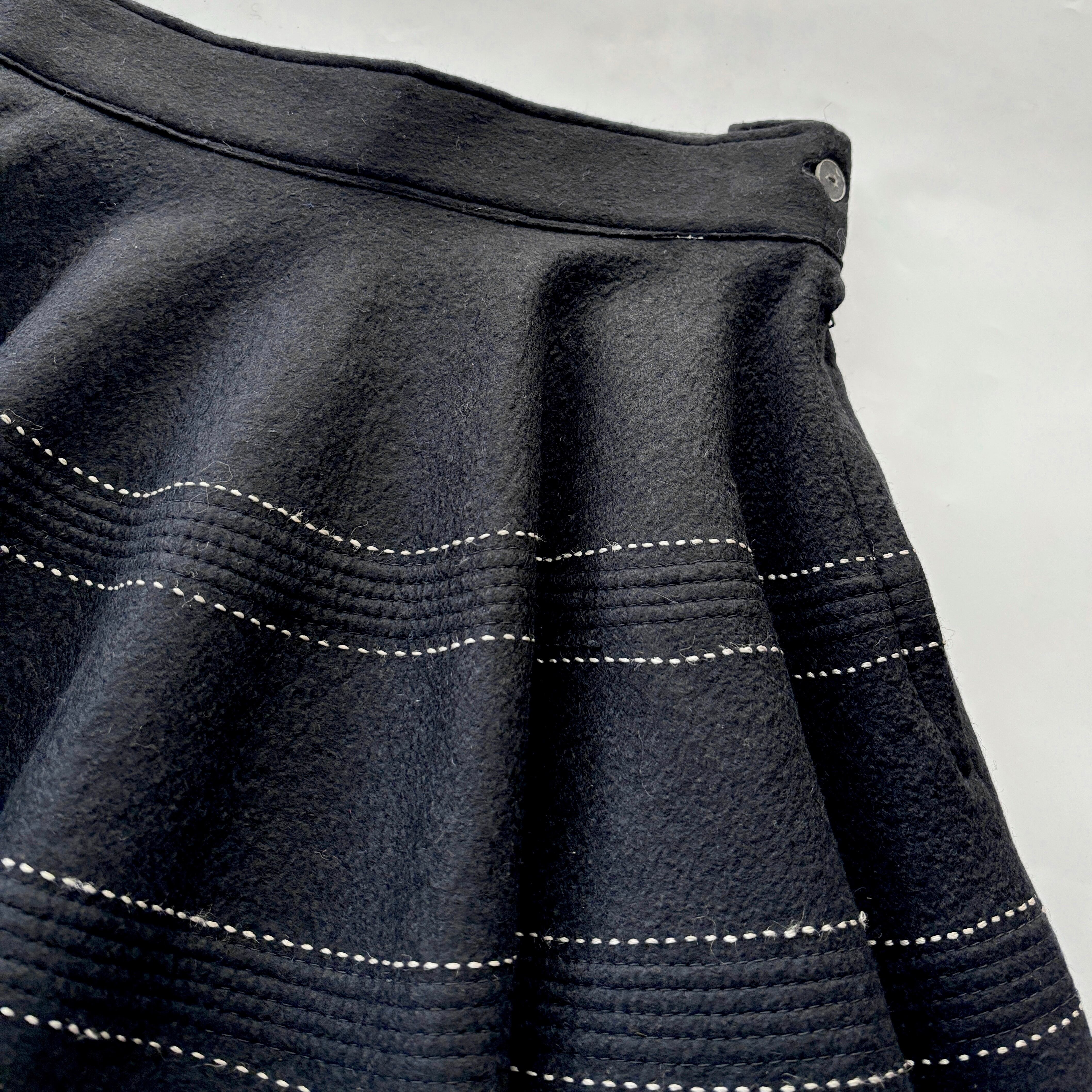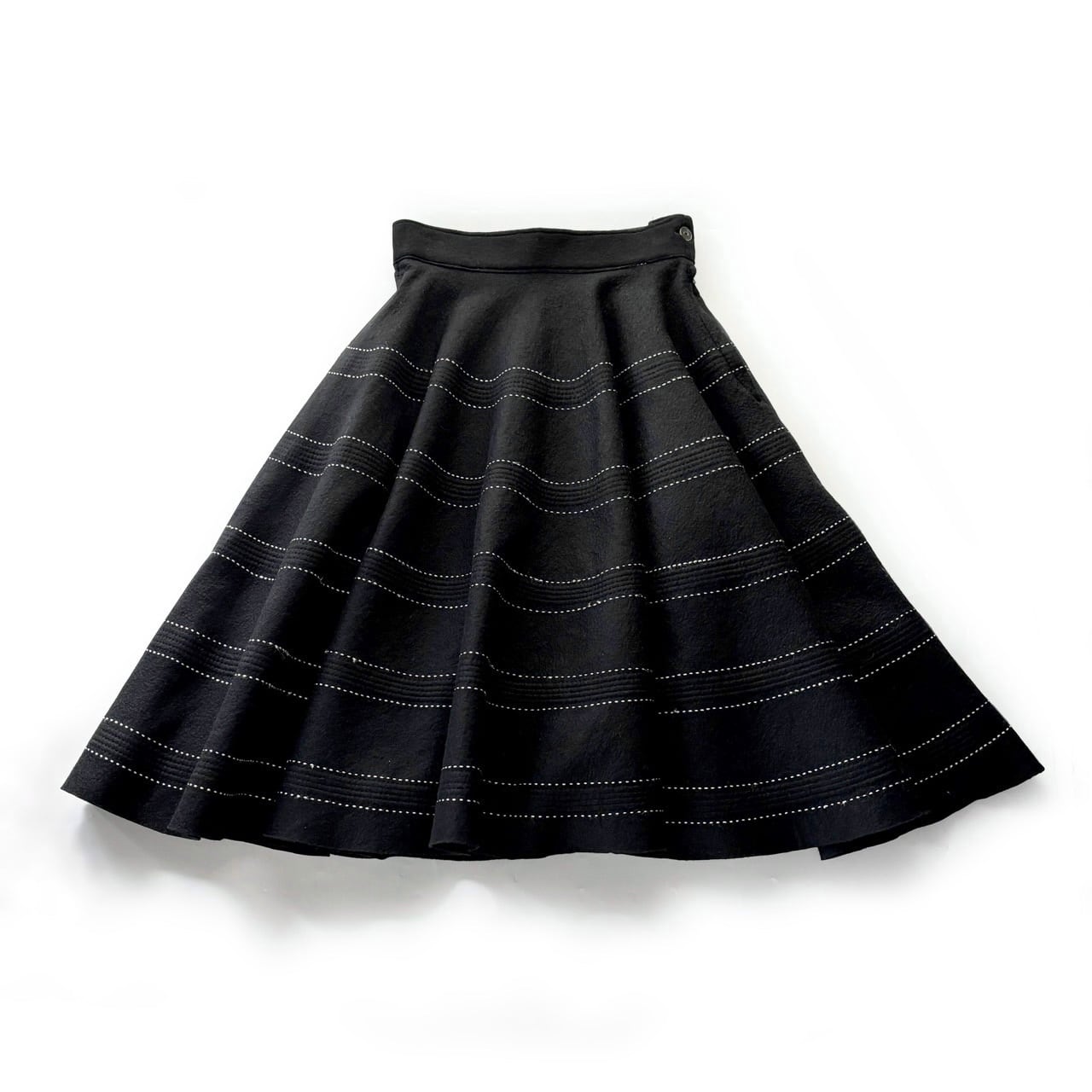 光沢のある細いロープのような糸でステッチされたvintageサーキュラースカート