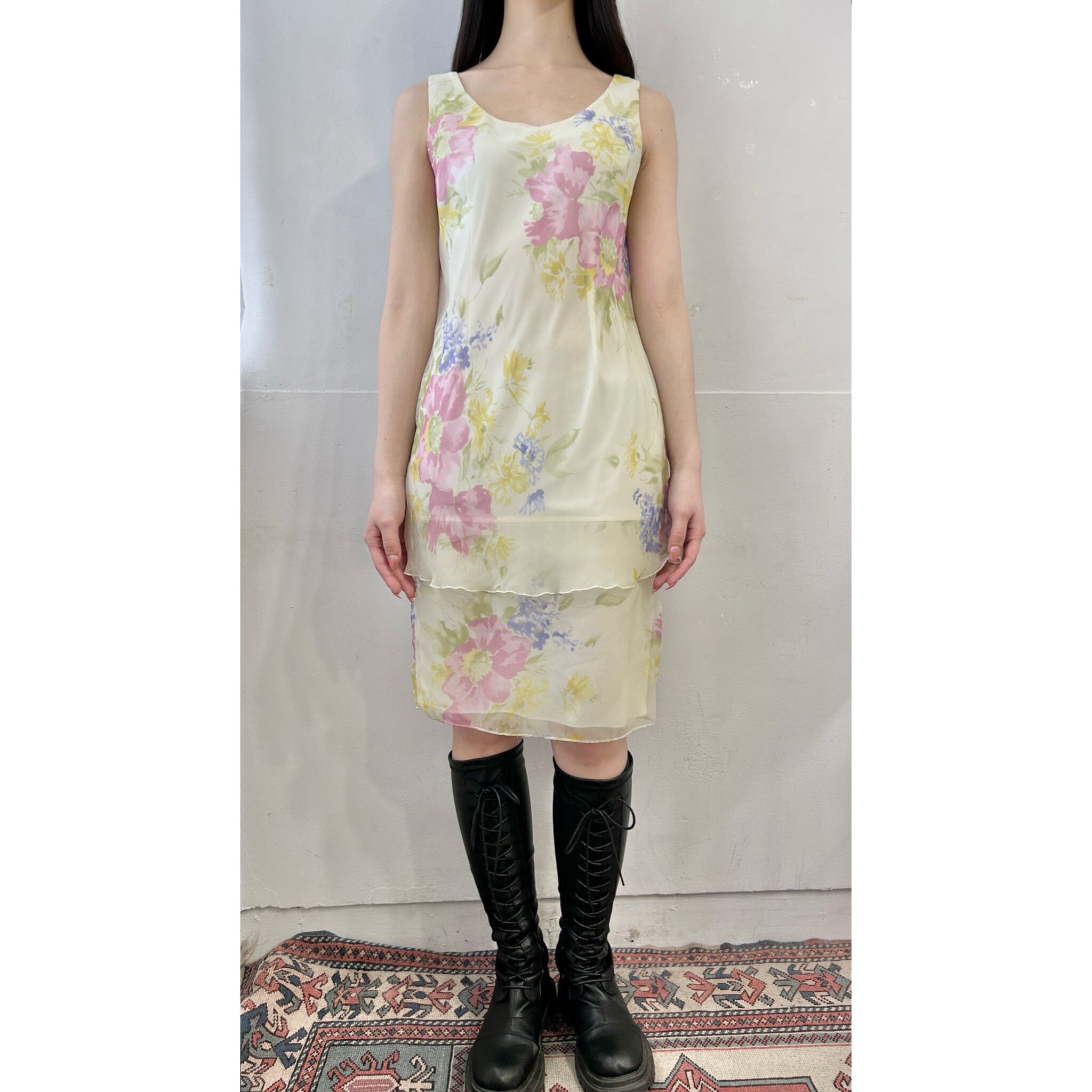 水彩画のような幻想的なタッチで描かれたお花柄のシアーワンピース❁
