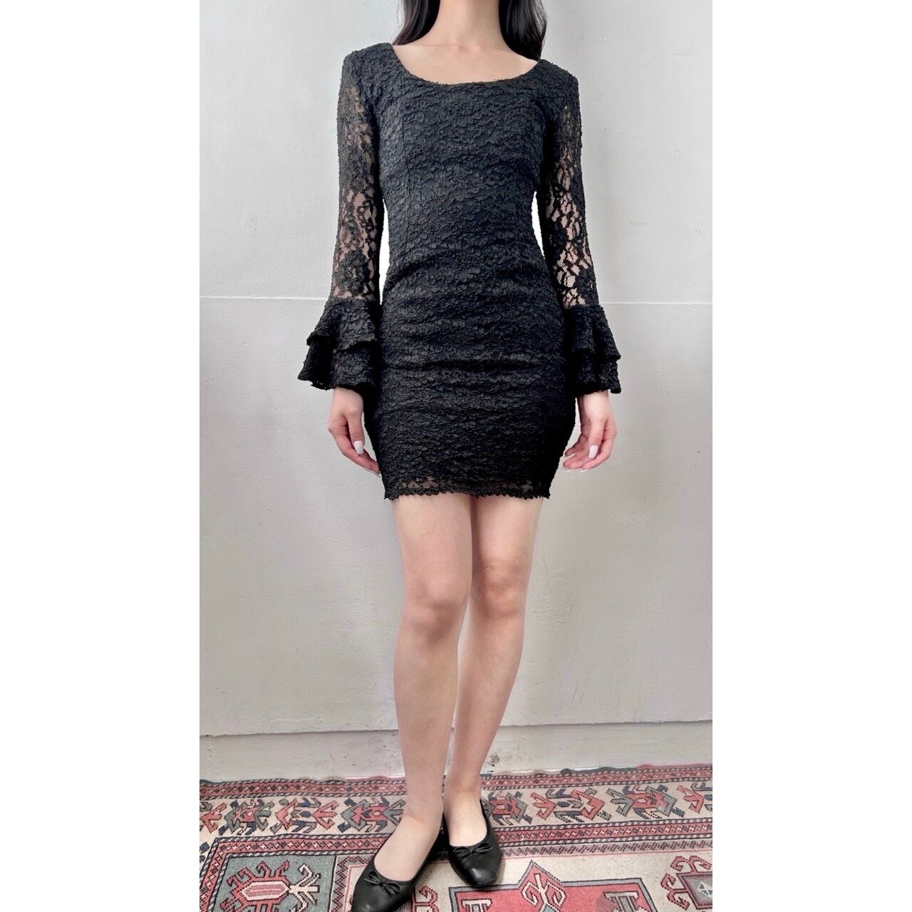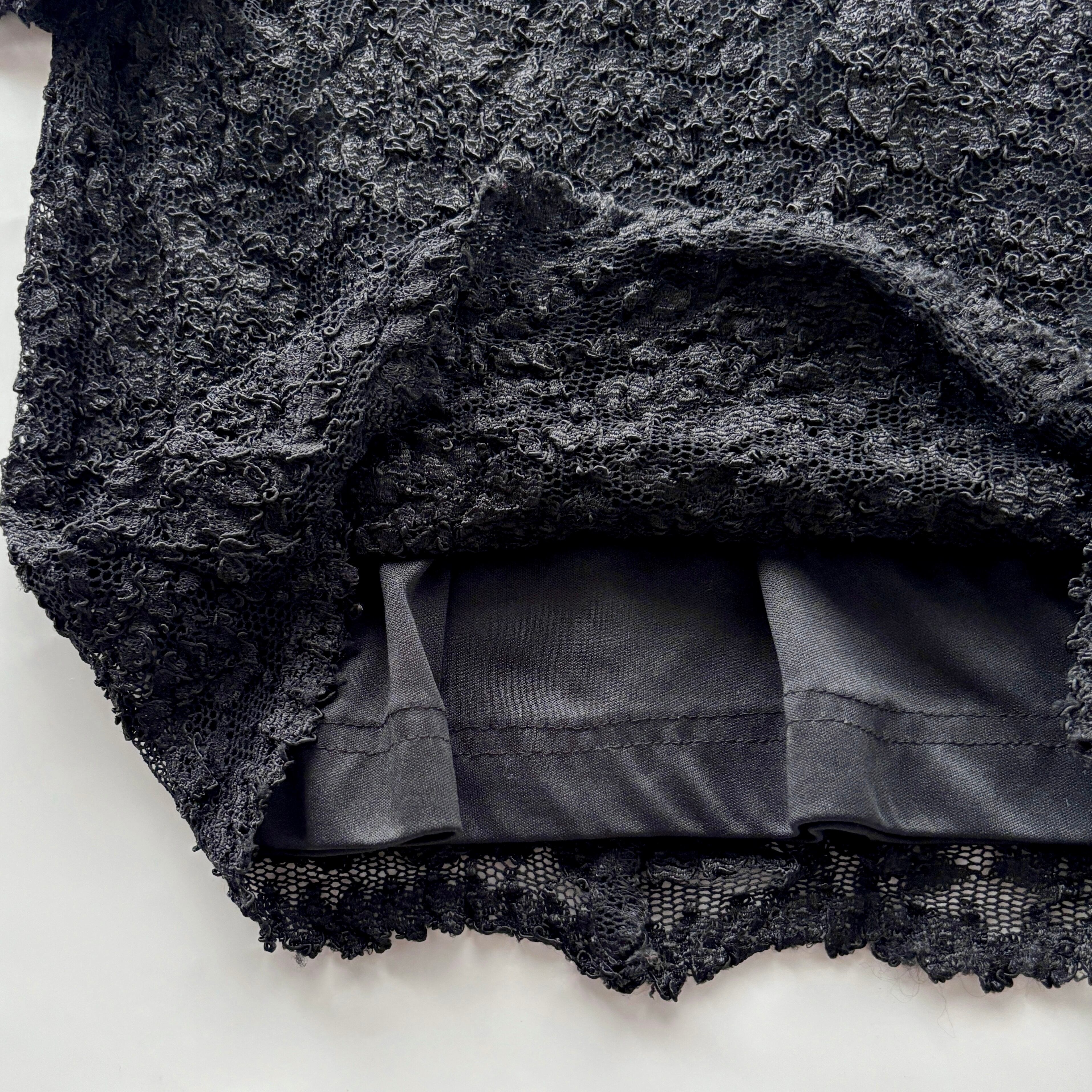 タイトなシルエットとボリュームのある袖口のレースのメリハリがpoint