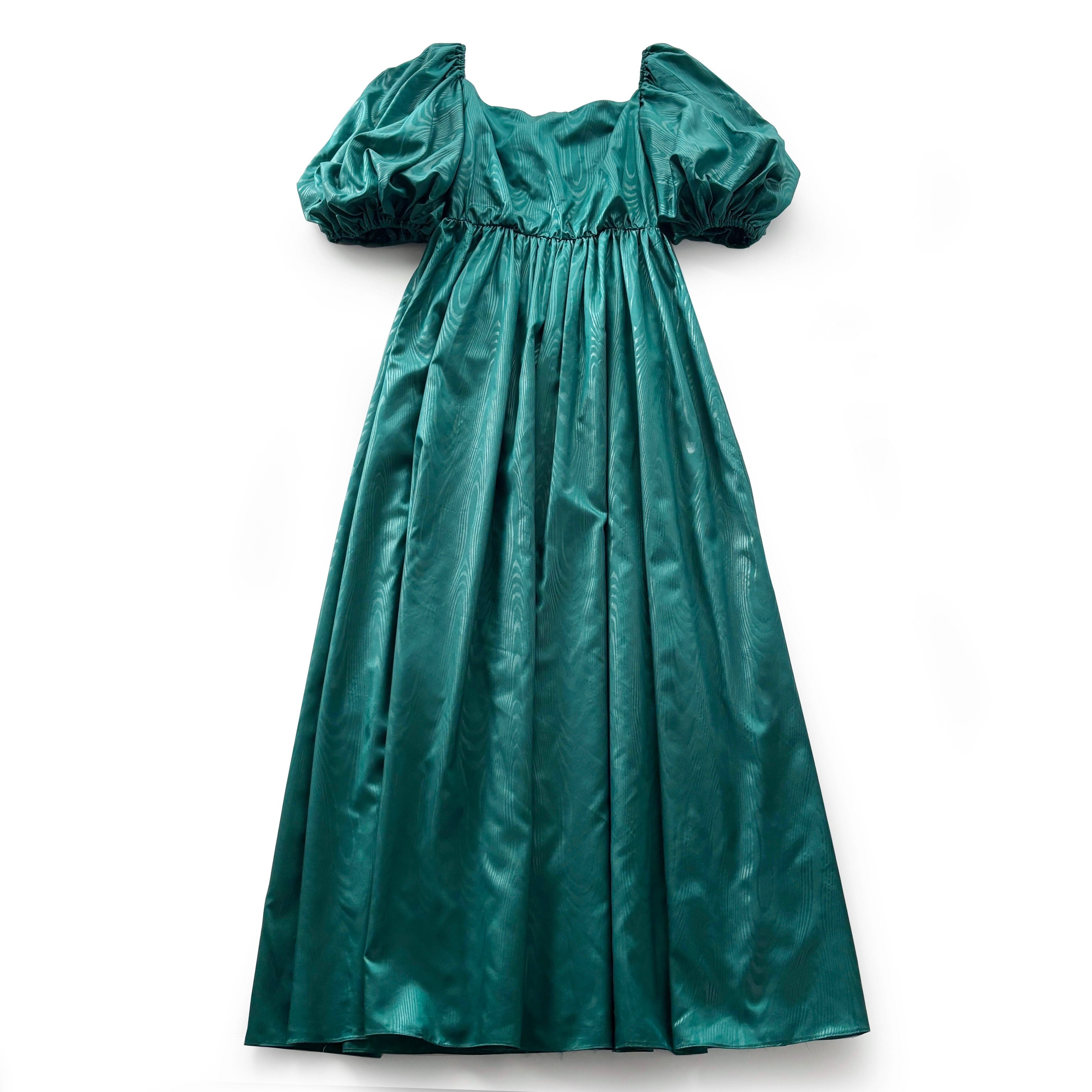 深みのあるエメラルドグリーンが目を惹く70’sマキシワンピース。