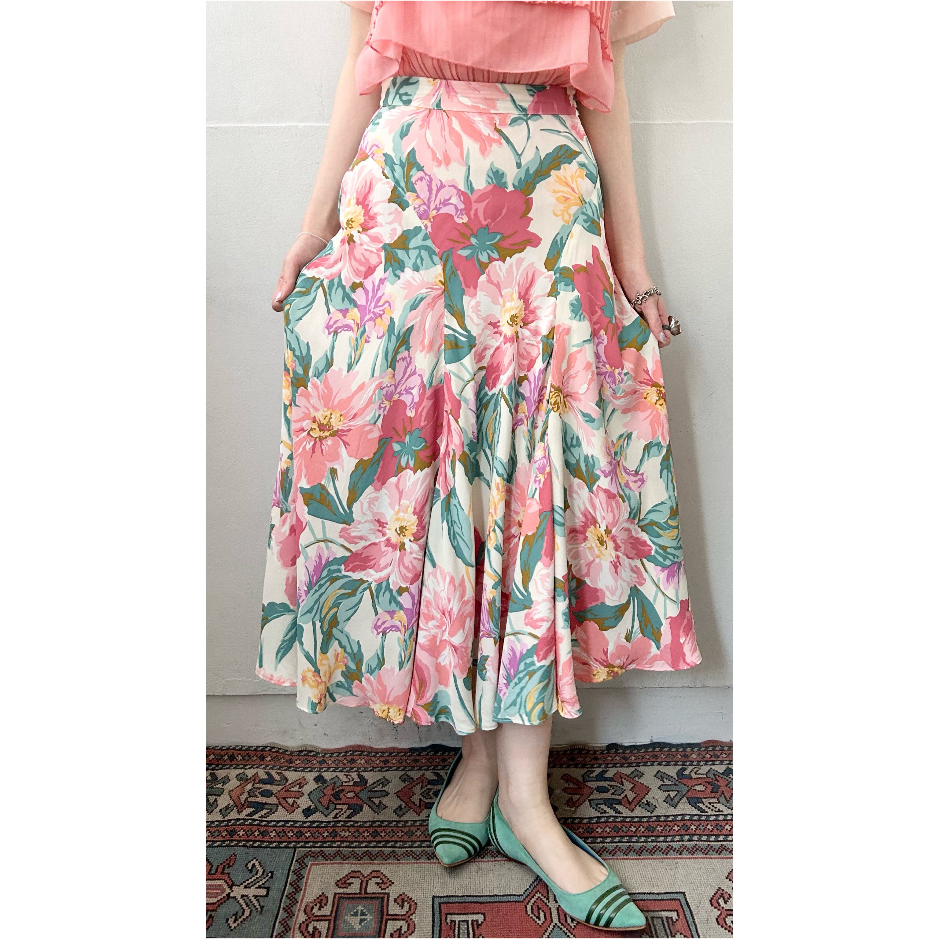 大きな花柄が華やかなCarole Littleのフレアスカート❁