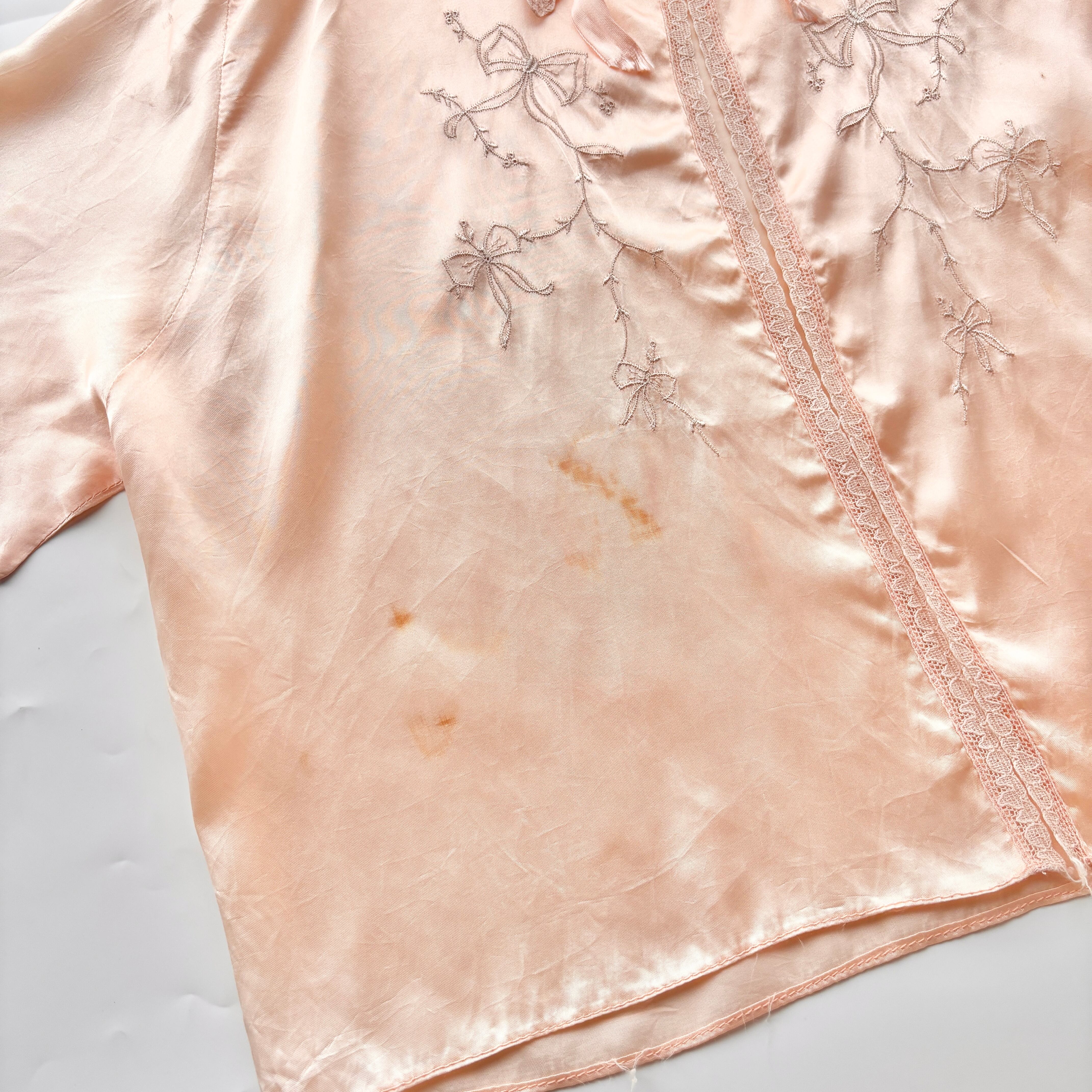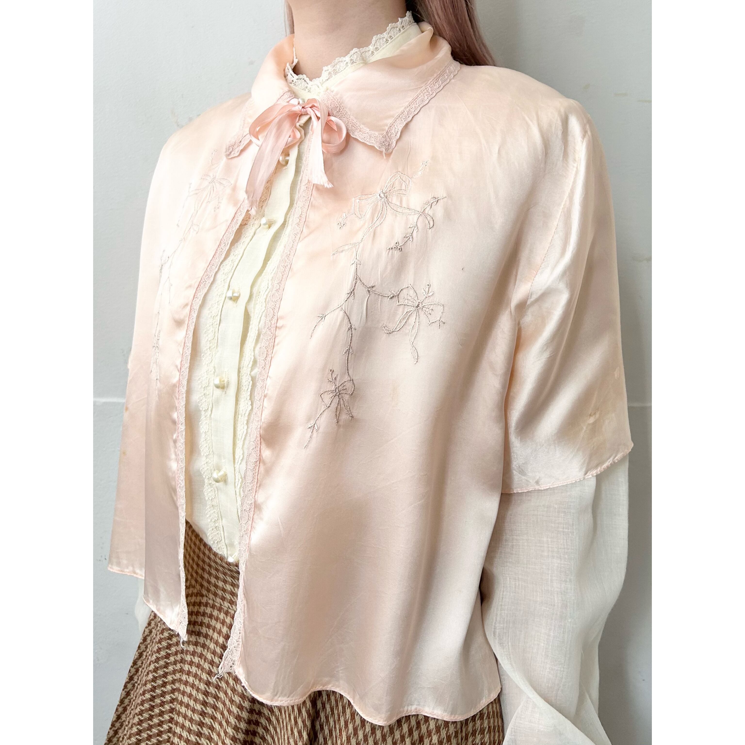 リボンモチーフが刺繍で描かれたvintageベッドジャケット
