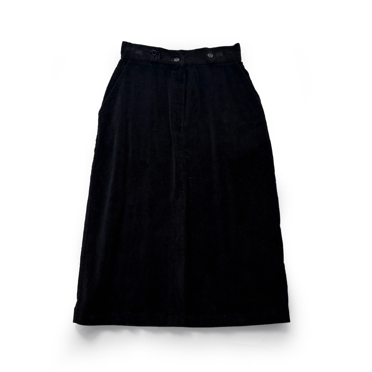 ウエストのボタンデザインがアクセントになったコーデュロイ素材のスカート