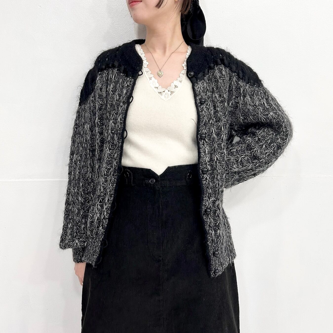 モノトーンなモヘアニットカーディガン