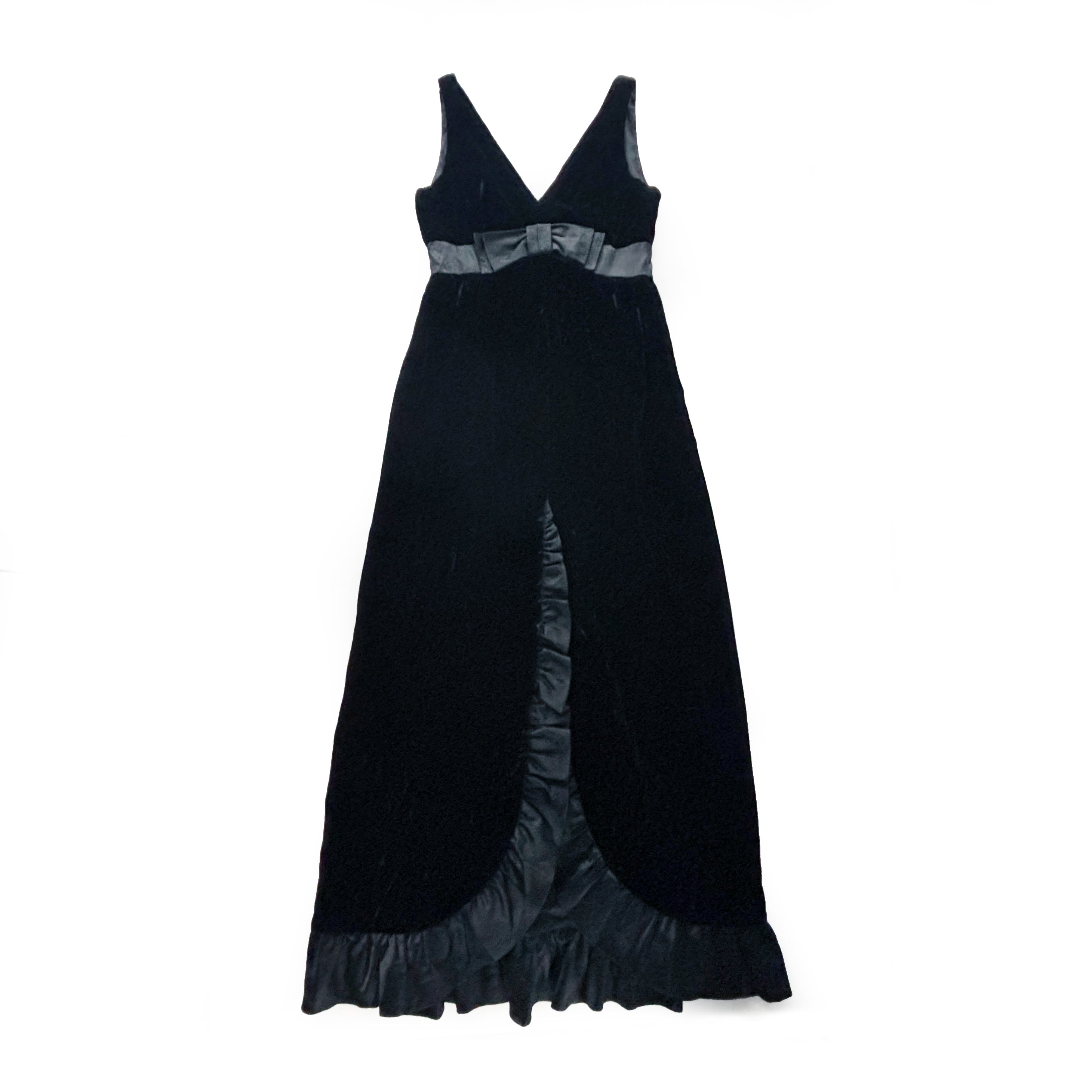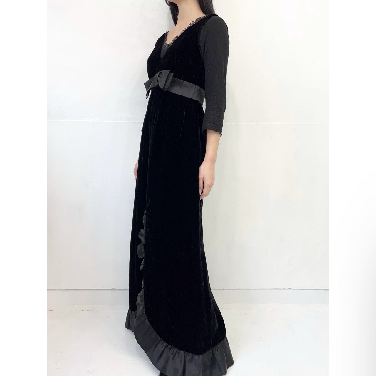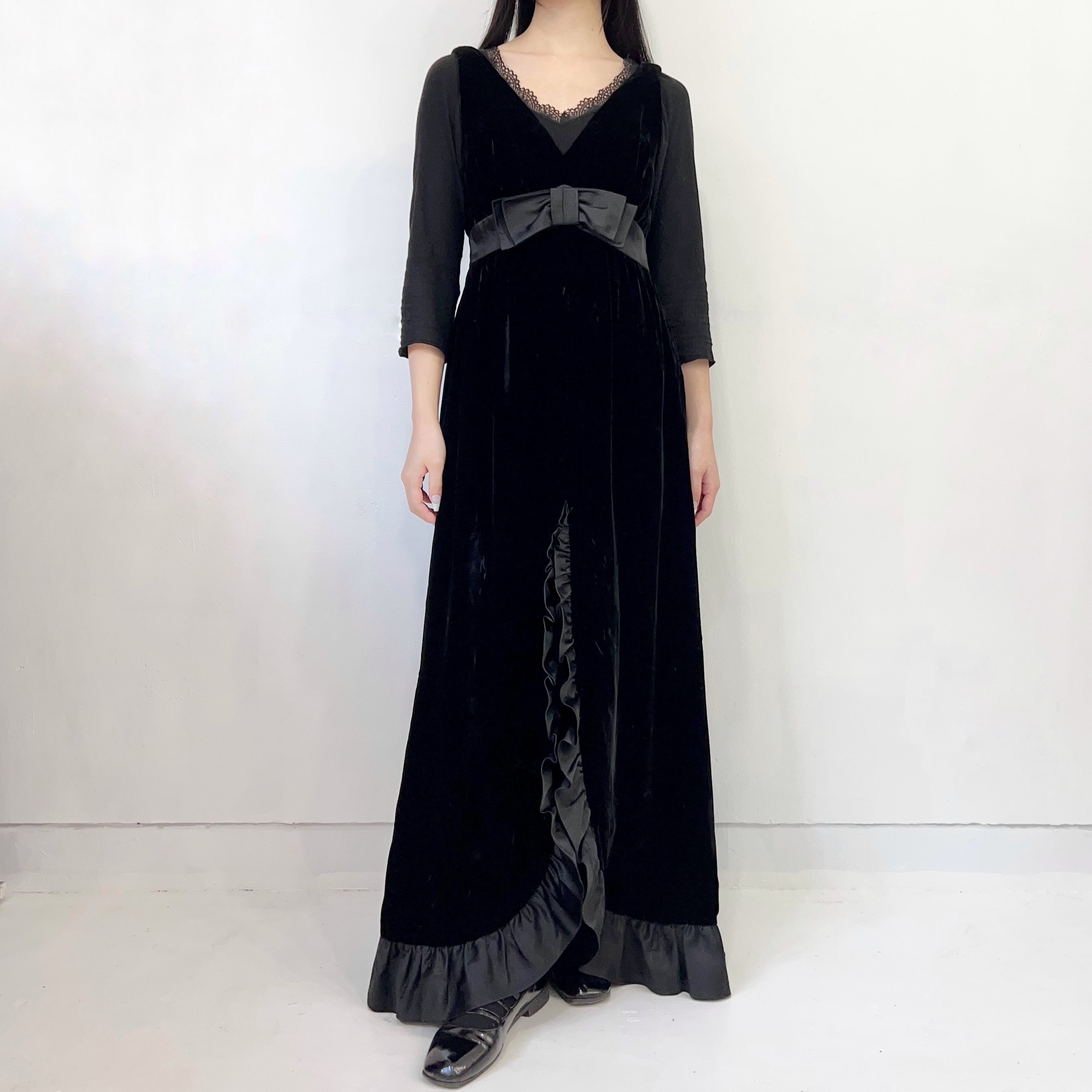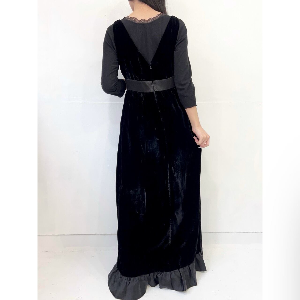 裾にたっぷりフリルがあしらわれたベロアワンピース