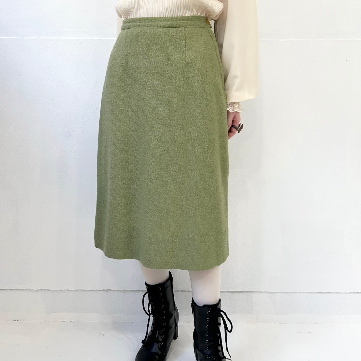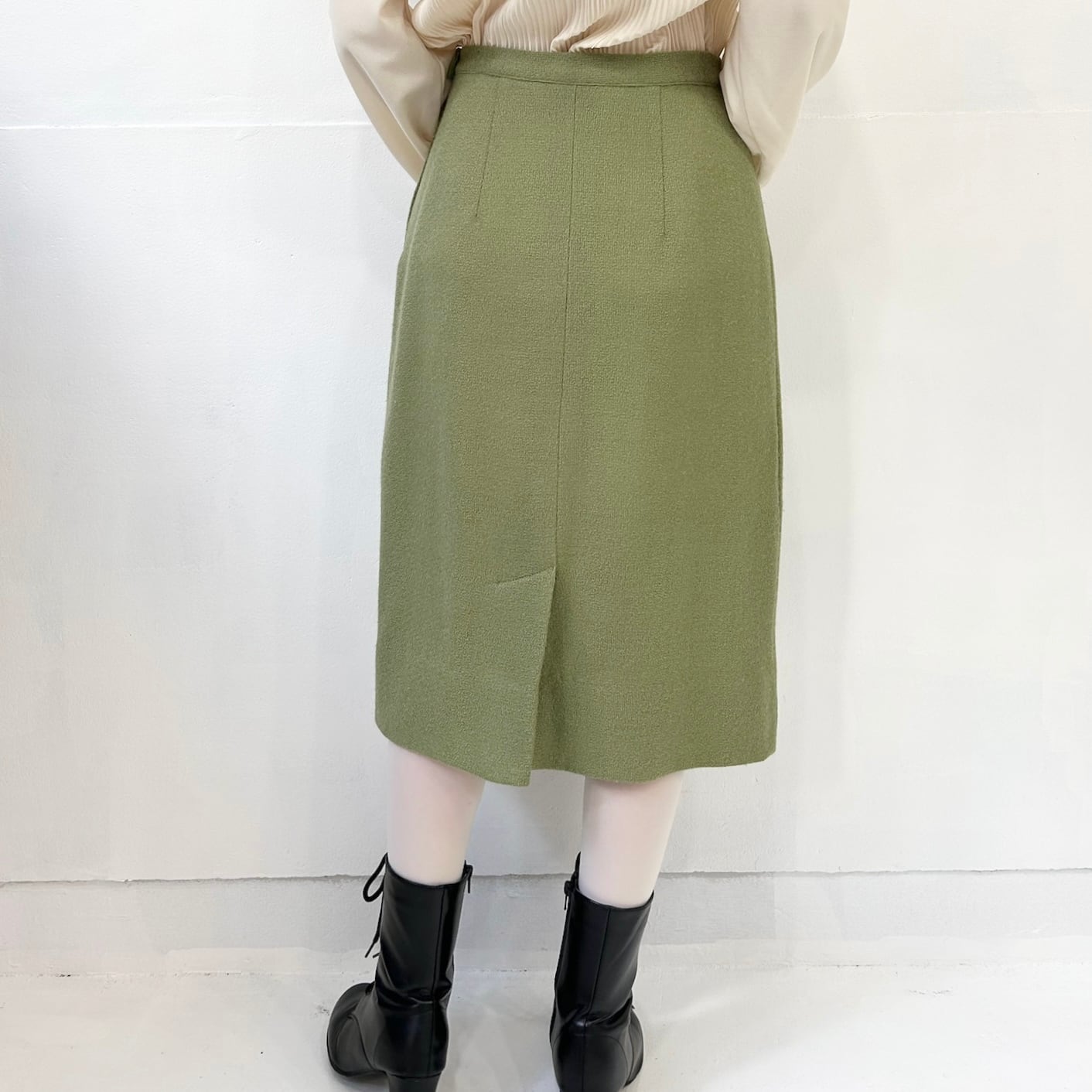 抹茶ミルクのような深みのあるミルキーなカラーのスカート