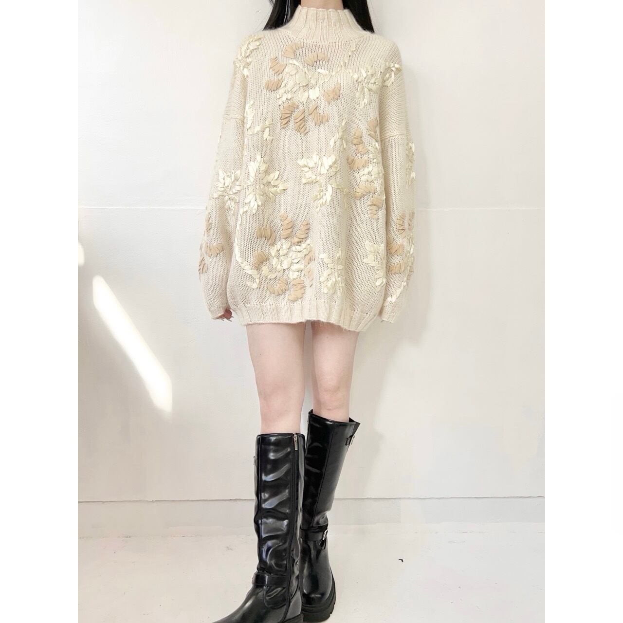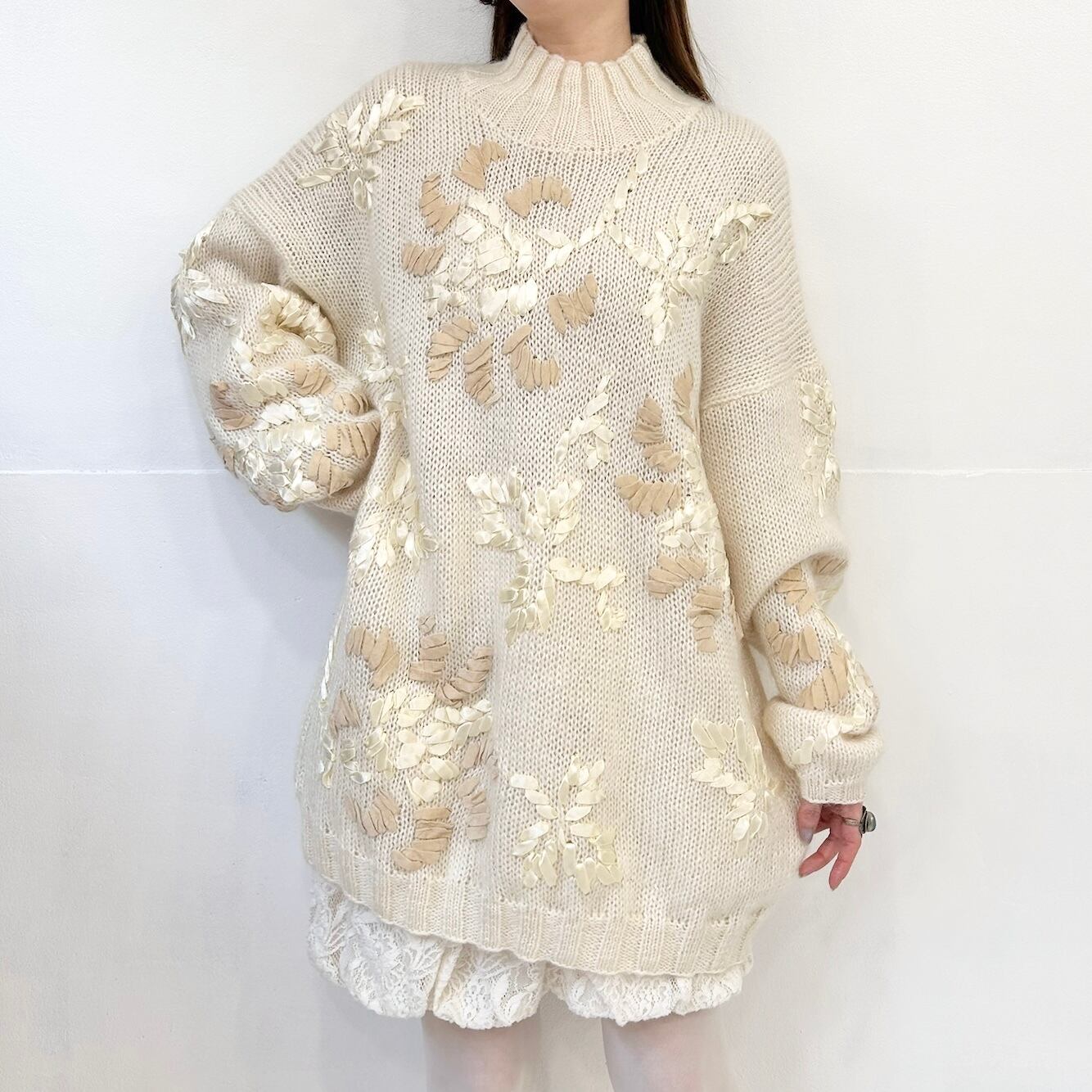 お花モチーフモヘアニット