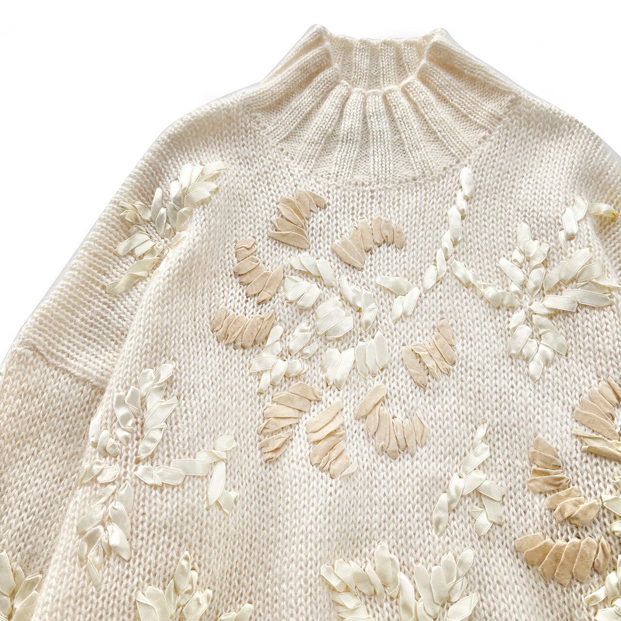 サテンとベロアのリボンでお花が描かれたmohairニット❁